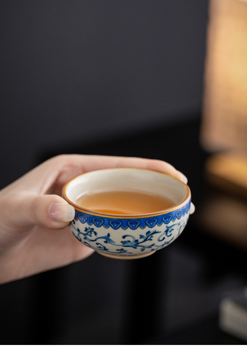 汝窑青花缠枝莲主人杯陶瓷品茗杯高档喝茶杯茶盏定制商务伴手礼