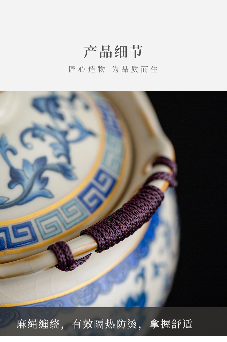 青花汝窯手掴み壺蓋碗茶杯高級大サイズパーマ防止家庭用工夫茶具泡茶茶碗蓋付き