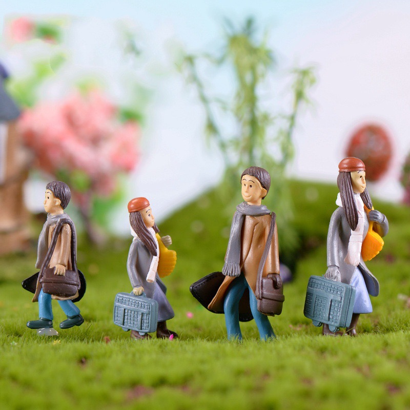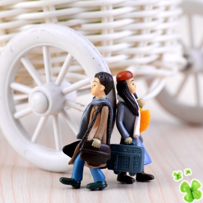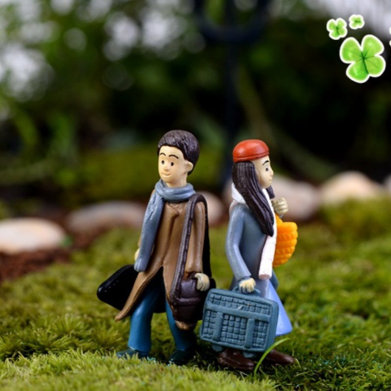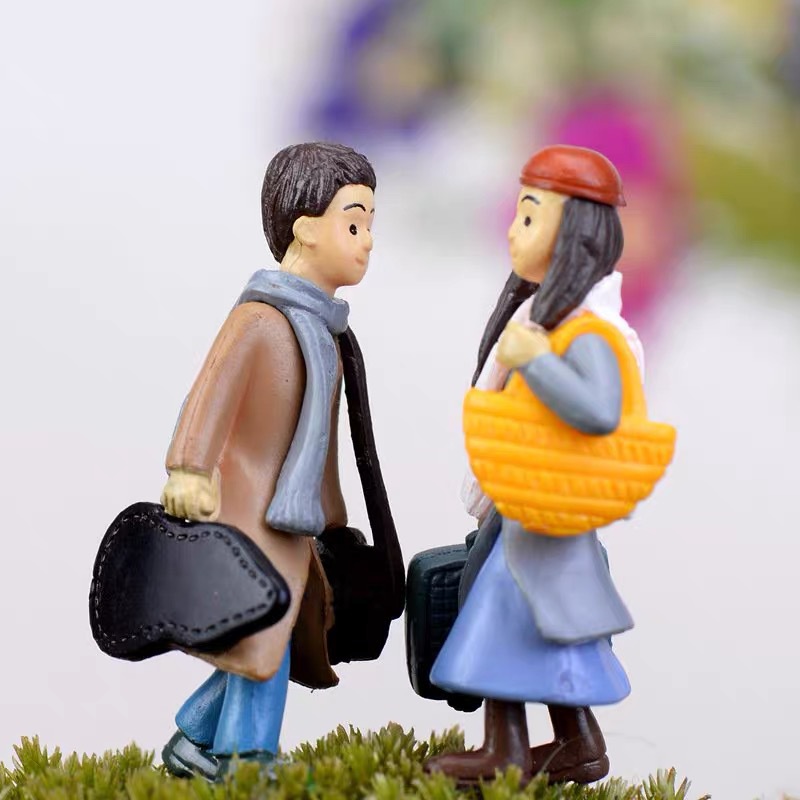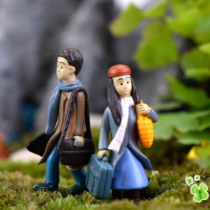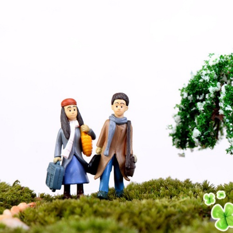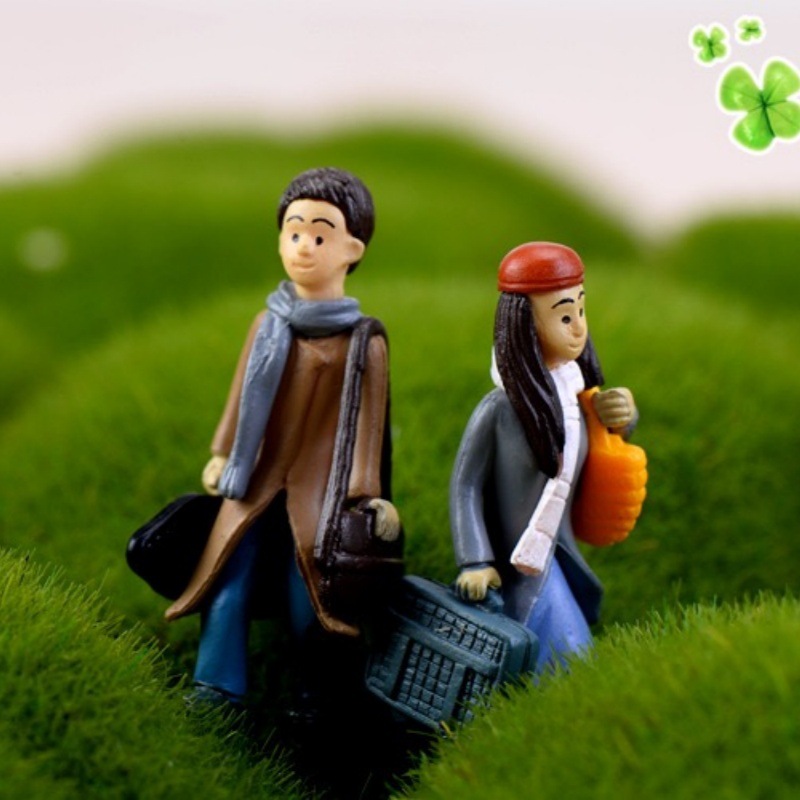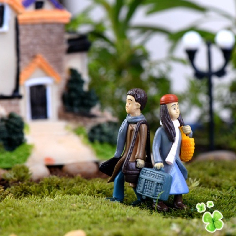 コケの微景観の置物は左に右にカップルに多肉植物の組み合わせの盆栽のアイデアの置物を並べます。