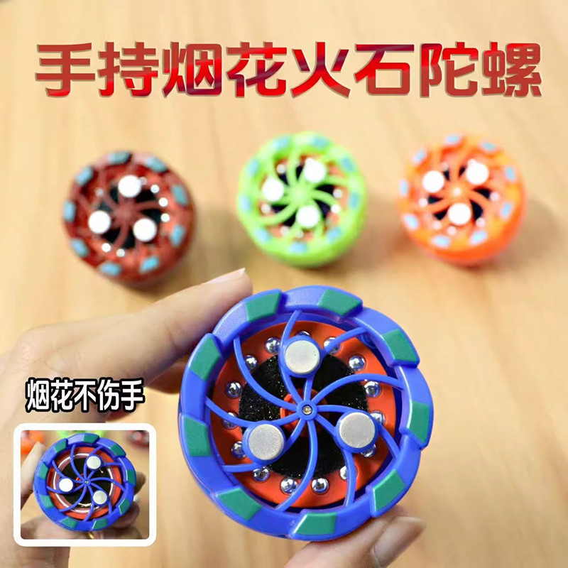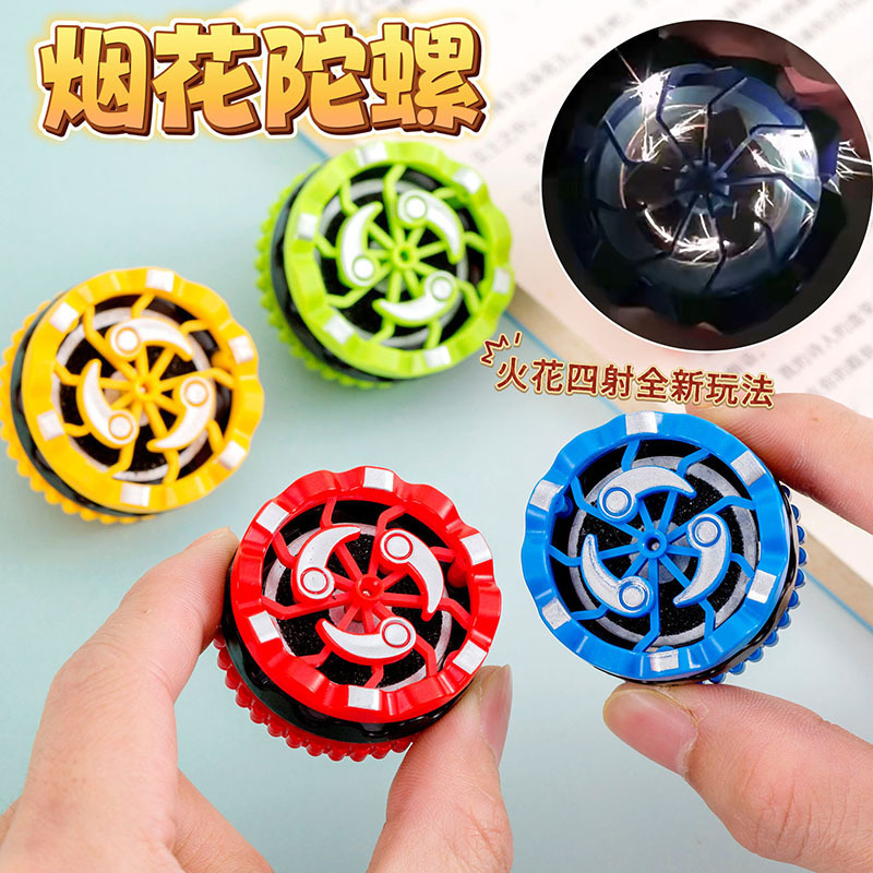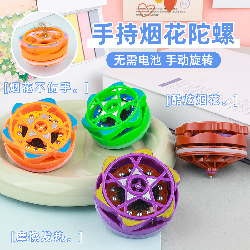 烟花陀螺手持玩具会冒火花发光旋转手持爆转陀螺双人对战玩具批发