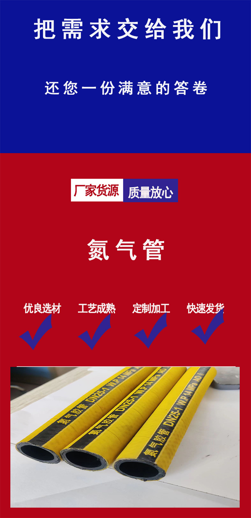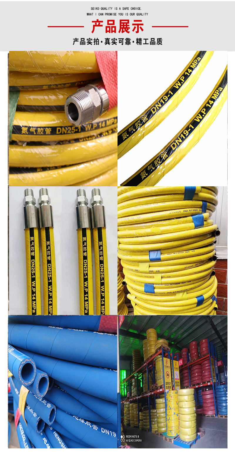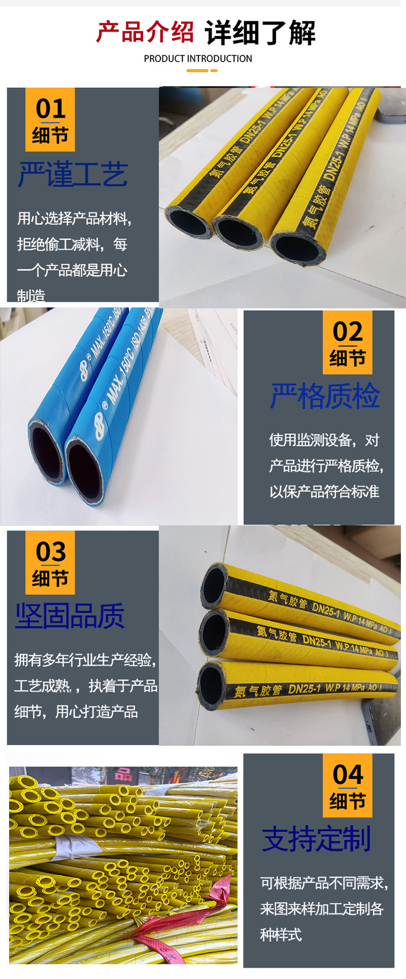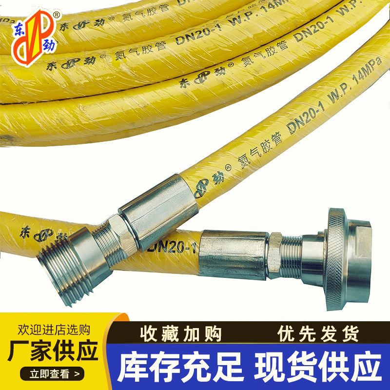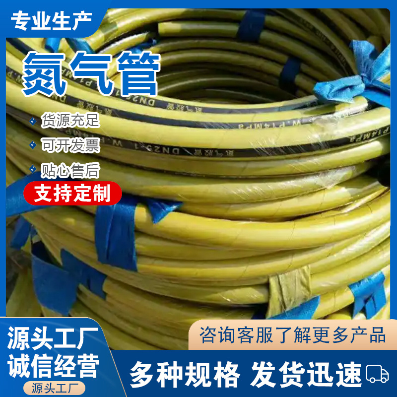 黄色の窒素ガスホース、鋼線編組強化ホース、高圧窒素ゴムホースの在庫供給