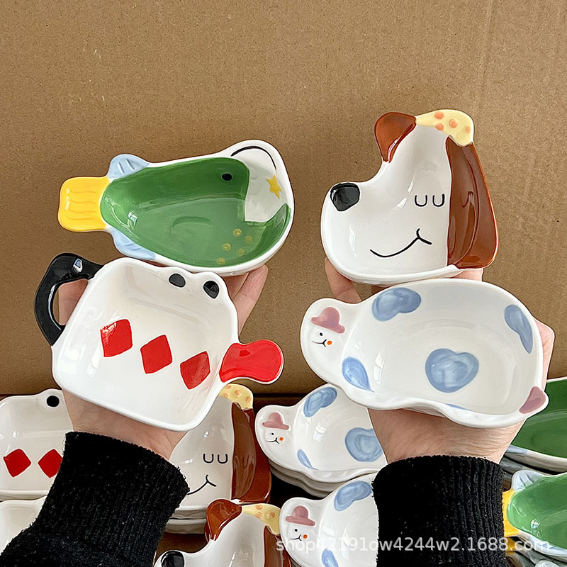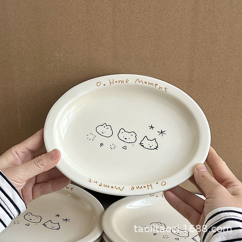インかわいい落書き小動物デザートプレートセラミックオーバルプレートフルーツプレート韓国デザートサラダ朝食プレート