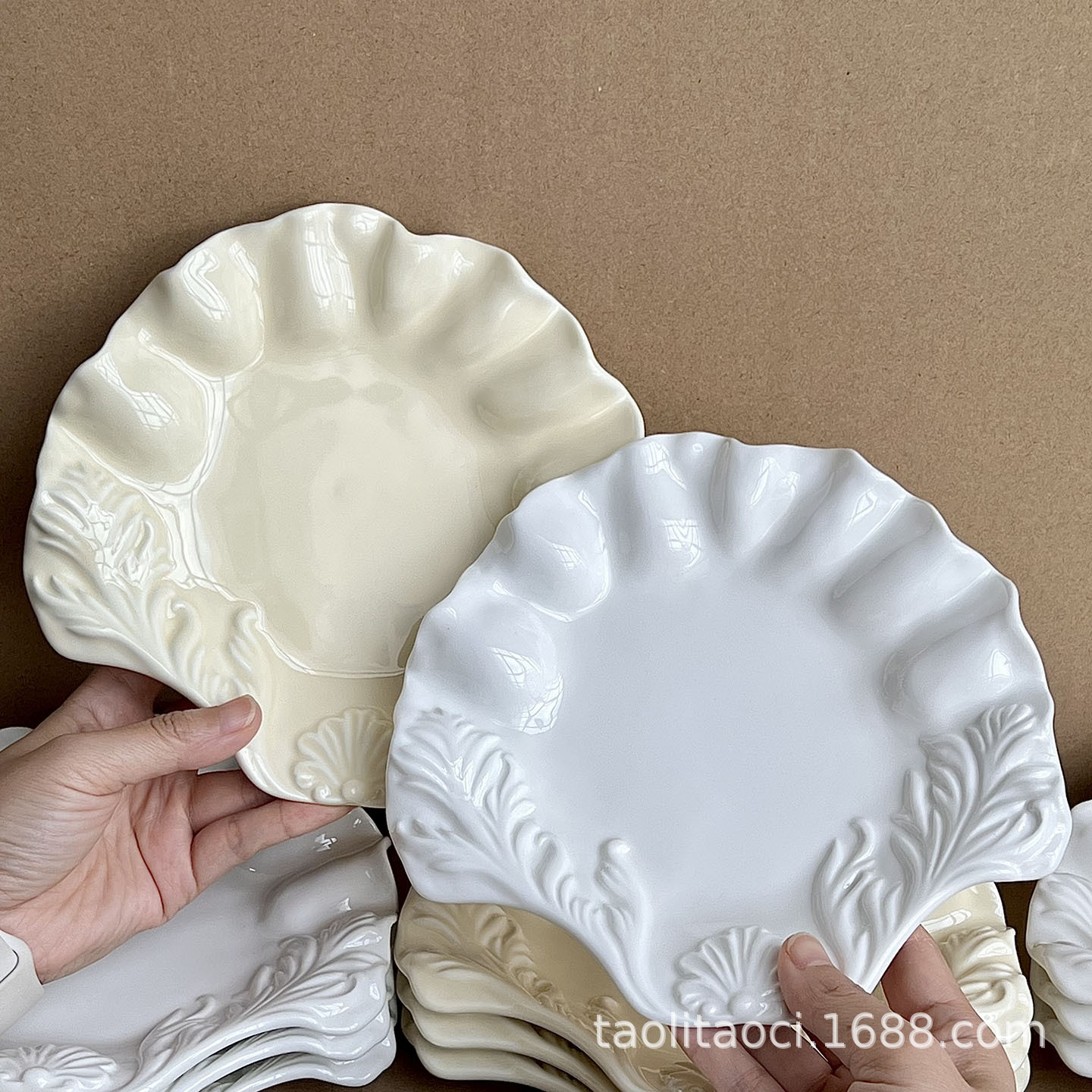 Ins小衆大貝殻皿 ~ フレンチレトロレリーフ陶磁器貝殻造形皿収納皿果物デザート皿