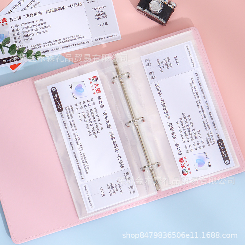 レーザーチケット収納冊皮質多機能チケットチケットチケット回収冊三寸小カードルーズリーフ