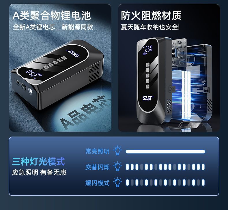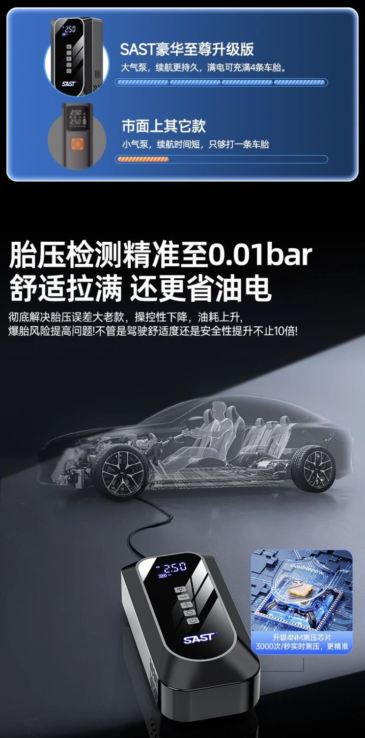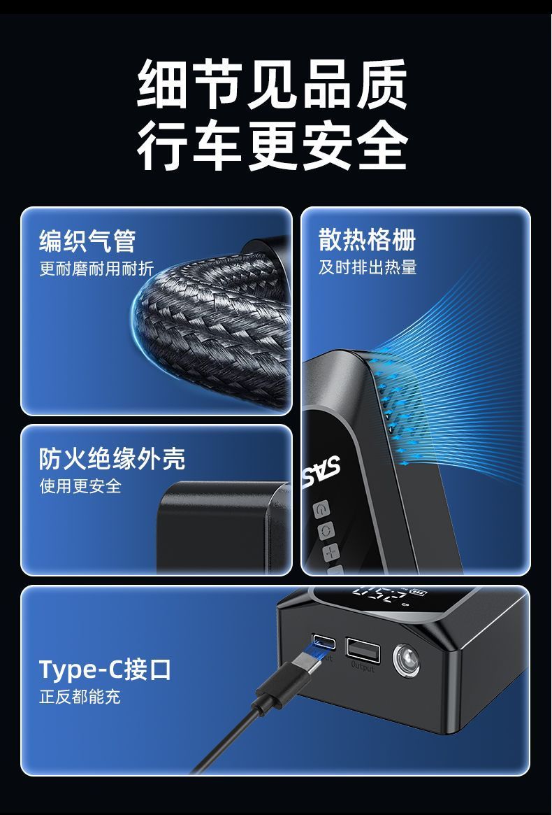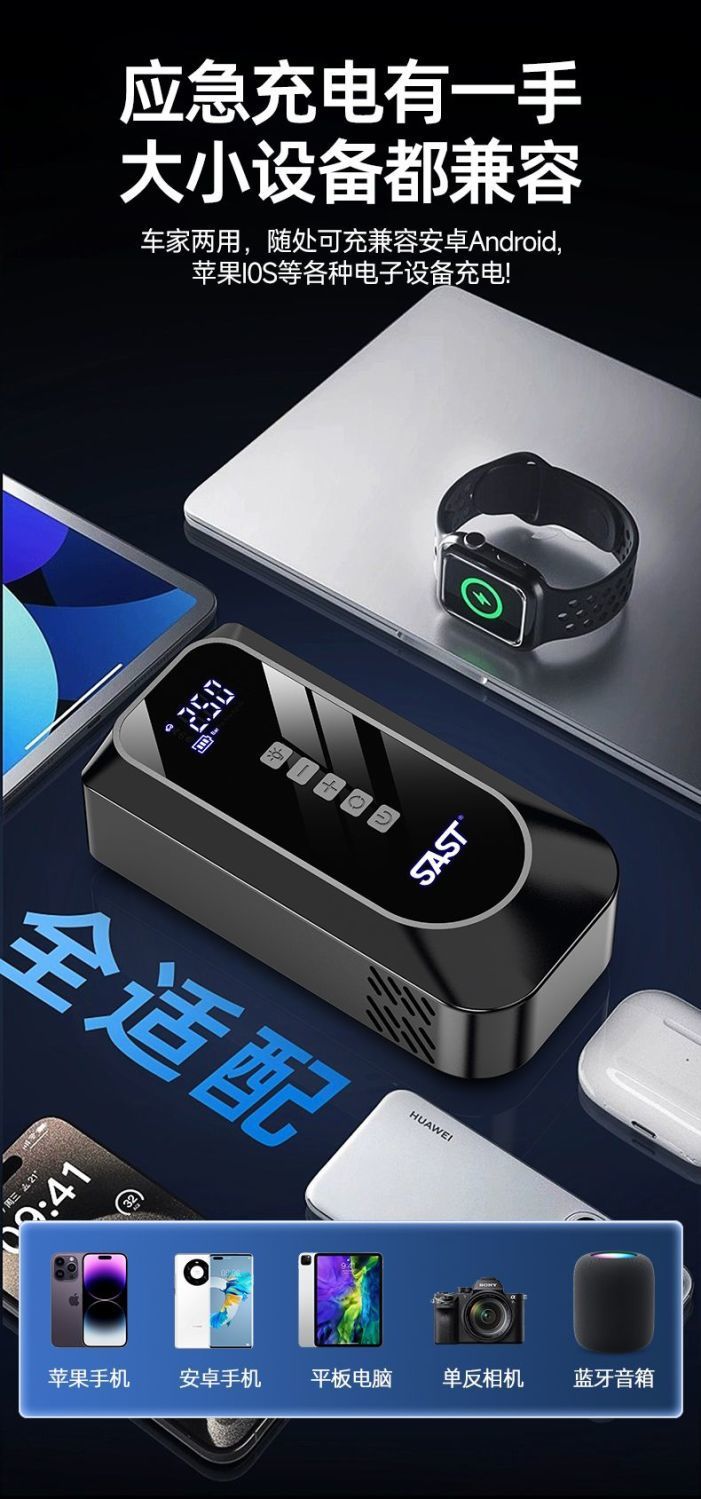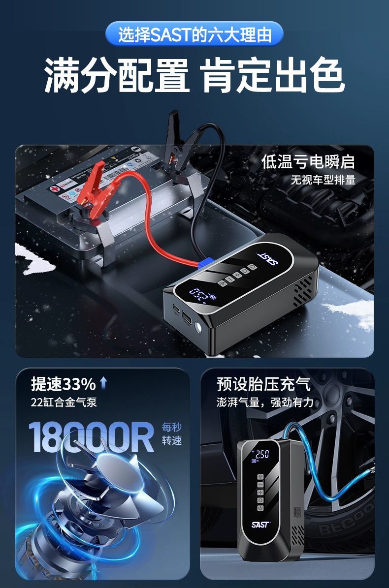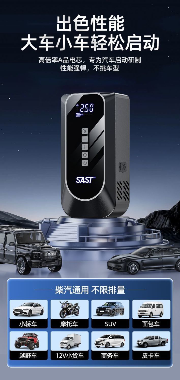 SAST正規品自動車緊急起動空気入れ一体機車載エアポンプ両用スマートタイヤインフレータブル