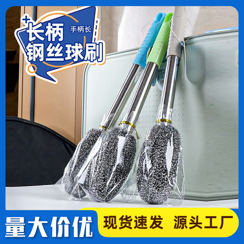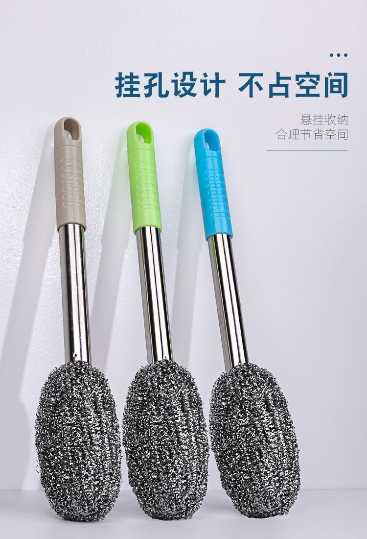家用带柄钢丝球刷子长杆洗锅生锈洁厨房伤手洗碗瓶罐锅刷