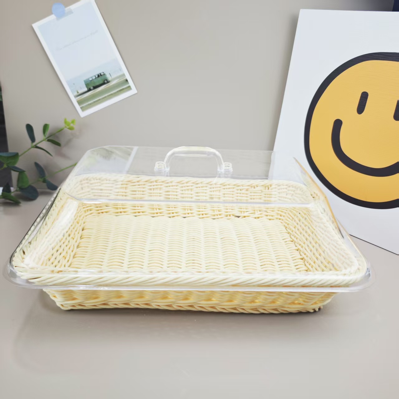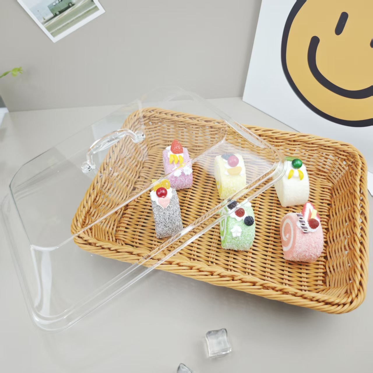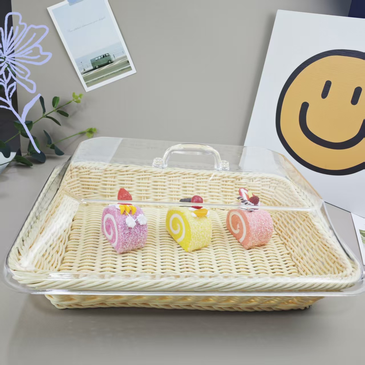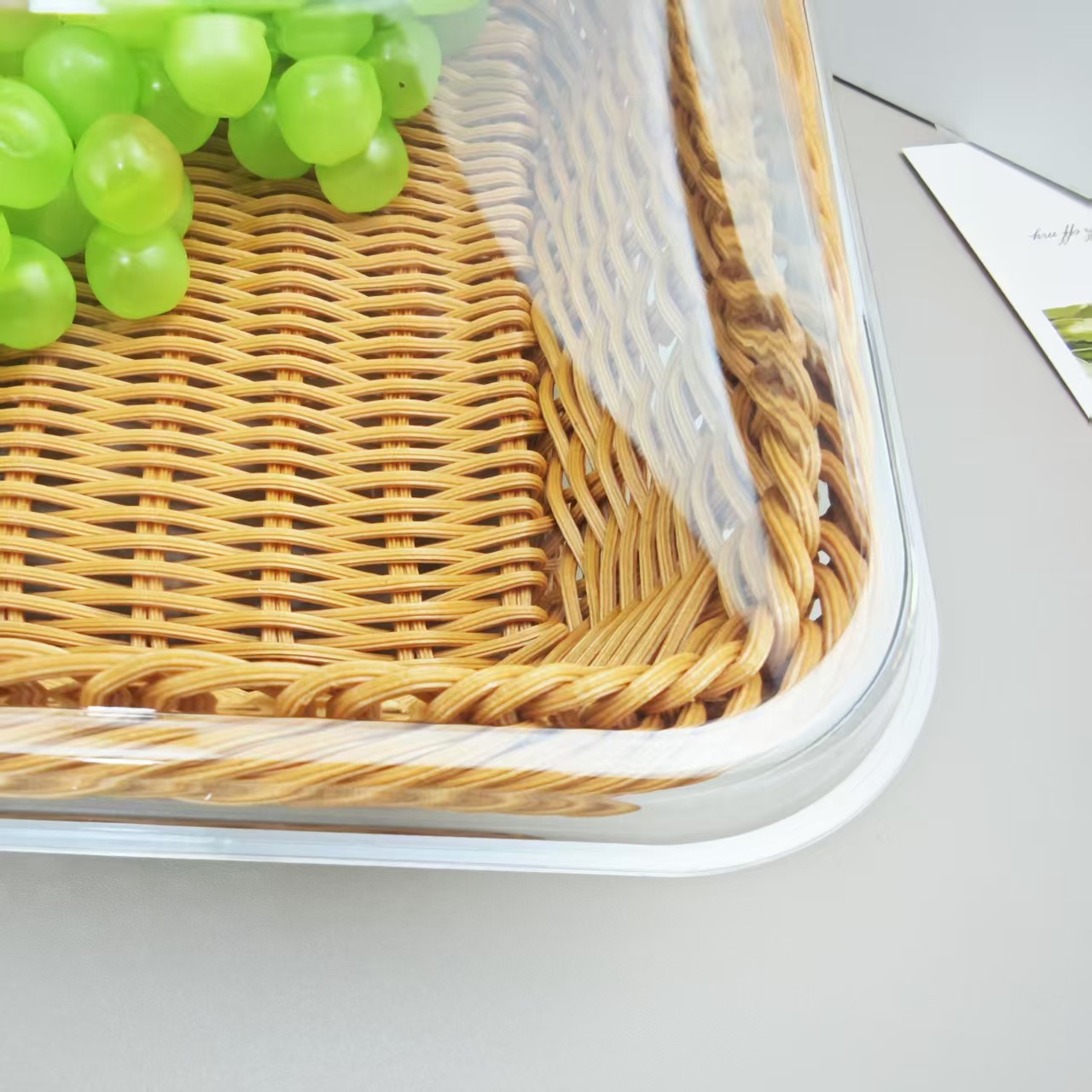 藤编是一种传统实用工艺,利用山藤编织的藤篮安全环保,美观实用,由于采用了手工编制的高密度和强度的工艺,藤编篮子可以承受较大的重量且不易损坏,不易脱漆或褪色。全新的亚克力原材料,能给产品带来不易发黄,晶莹剔透,透明度高,媲美玻璃,安全环保,无毒无味,防摔耐磨等。遇见你便是奢华的开始,新型的蛋糕水果篮引领前沿市场,是居家招待的必备精品,能给自己及客人舒适的视觉体验。