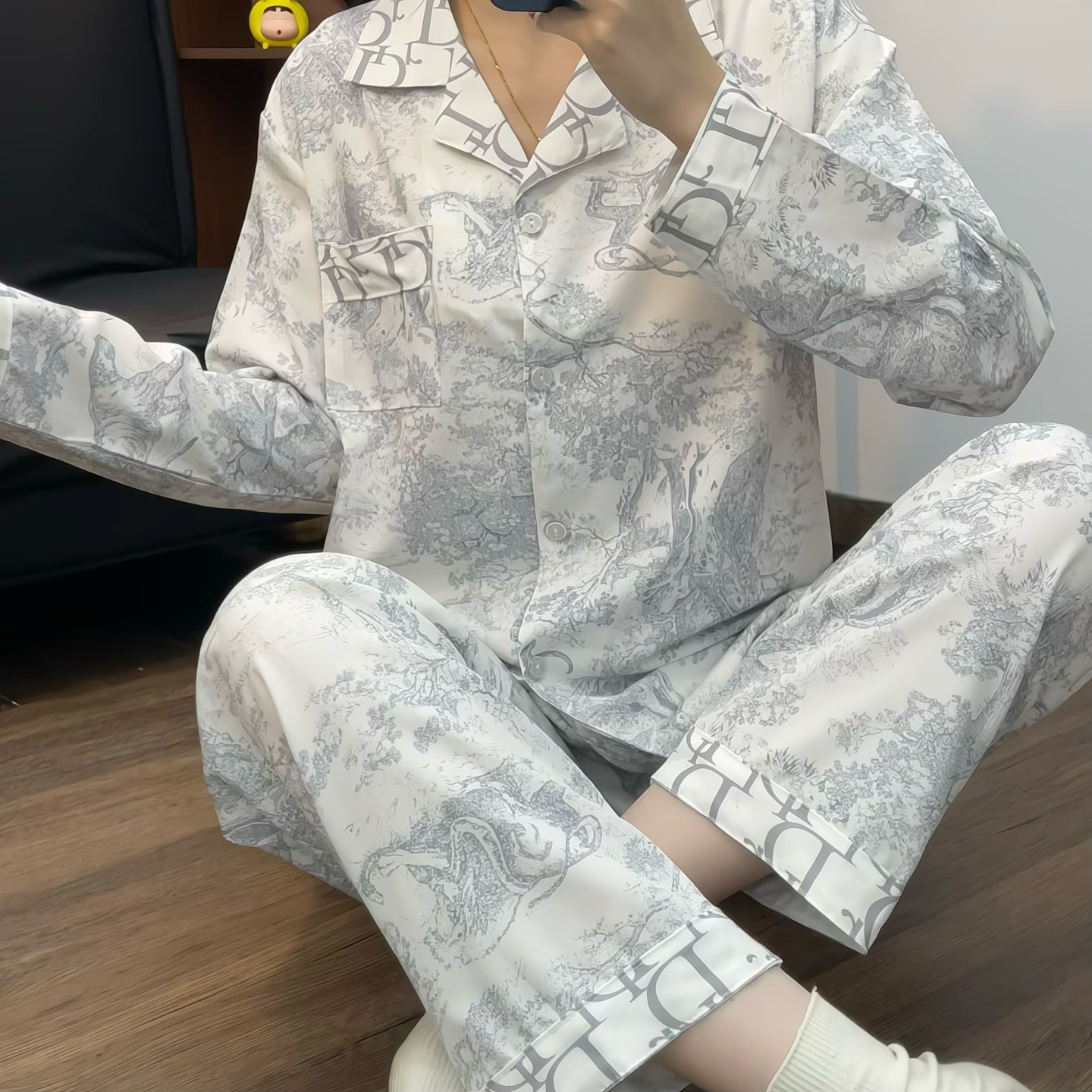 2025新作【D's Memory】プリントアイスシルクパジャマレディーススーツゆったり薄手高級ホームウェア