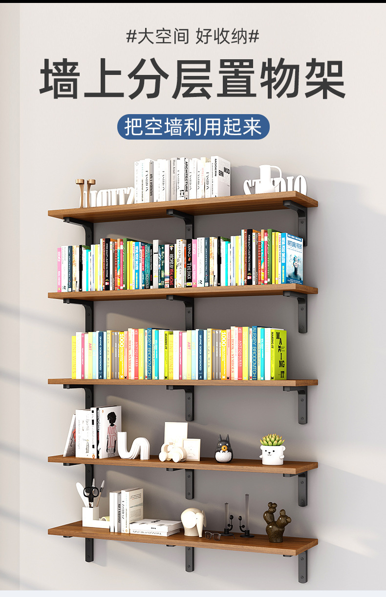 壁掛け棚、一本板の本棚、リビングルーム、寝室、壁掛け、多層木製棚、収納ブラケット