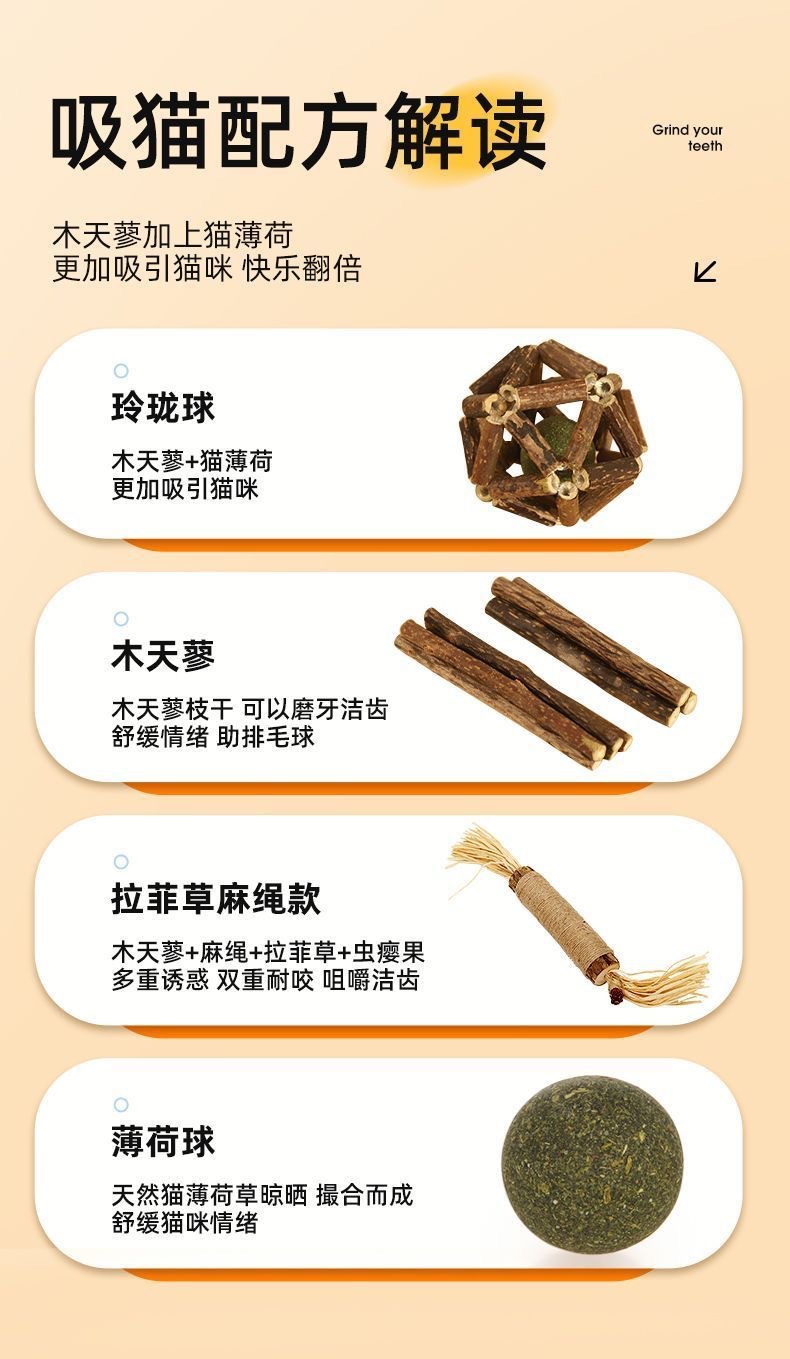 木製タデスティック(5本入、OPP包装),古典的な木製ポリゴナム(直径約1.2cm、長さ22cm),白紐付きタデ(直径約1.2cm、長さ22cm),ビッグマック木製ポリゴナム(直径3.5~4.5cm、長さ38cm),ビッグマック イヌハッカ(直径4cm、長さ31cm),双頭羽根木製ポリゴナム(直径約1.2、長さ35cm),ダブルボールカラースティック,羽根のカラースティック,ミントボール (3CM),10cmキャットニップボール(80g、OPP包装),マタタビロリポップ(OPP包装),フェザーミントボール,リックル(グリーン、OPPパッケージ),なめる楽しみ(ピンク、OPPパッケージ),リック・リー(ブルー、OPPパッケージ),ミント絶品玉(小サイズ),ミント絶品ボール(中サイズ),ミント絶品玉(Lサイズ),ベル絶妙ボール(トランペット),ベル絶品玉(中サイズ),ベル絶品玉(Lサイズ),フォーチュンロープ(青、OPP包装),フォーチュンロープ(緑、OPP包装),越境金運ロープ(青、OPP包装),越境金運ロープ(緑、OPP包装),マタタビネズミ,焼き魚の骨(ミント味、OPP包装),焼き魚の骨(胆汁フルーティー風味、OPP包装),焼き魚の骨(ミント+虫胆フルーティー味、OPP包装),キャットニッパーフィッシュ(OPP包装),キャットニップパウダー(5包)