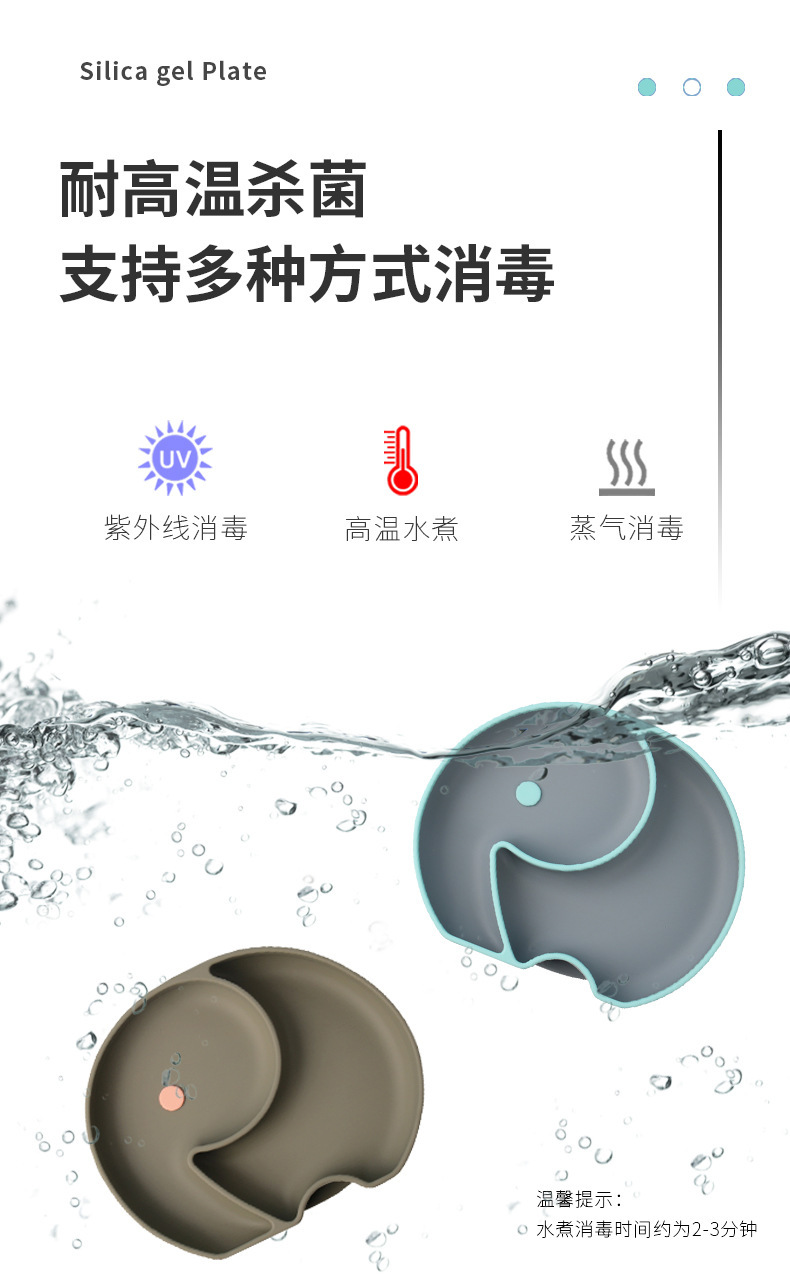 シリコン製子供用食器 丸型吸盤付きシリコン食器 子供用シリコンプレート 赤ちゃん用食事補助用仕切り付きプレート