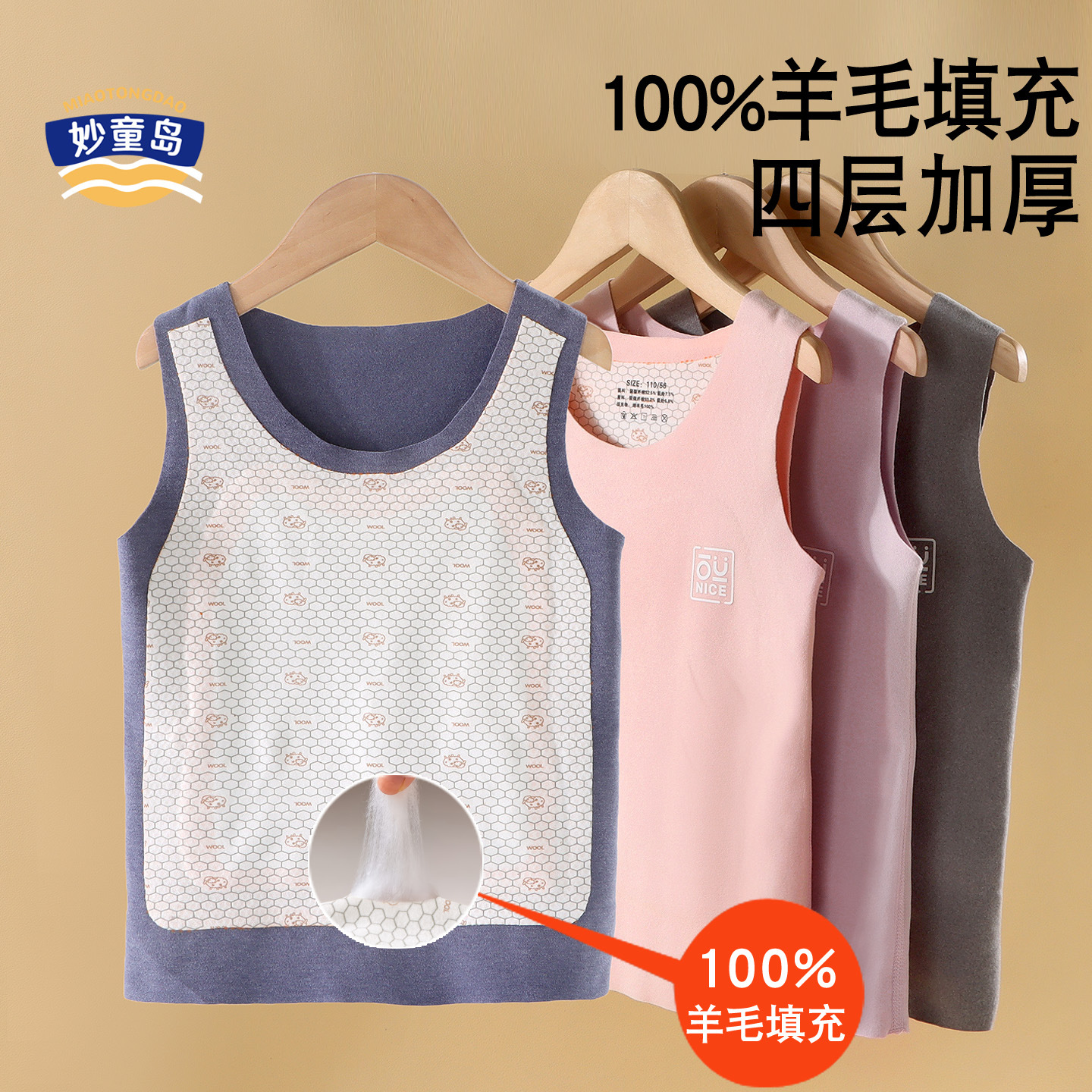2025秋冬新款百分之百羊毛填充儿童保暖马甲加绒加厚坎肩宝宝背心