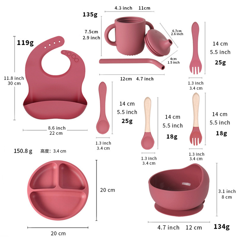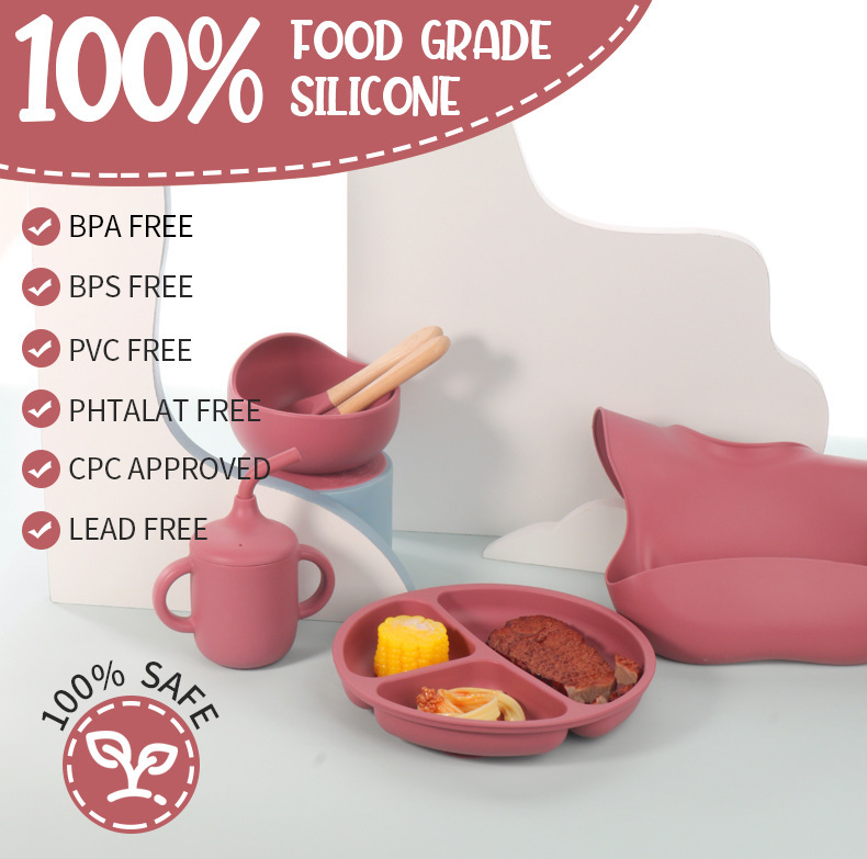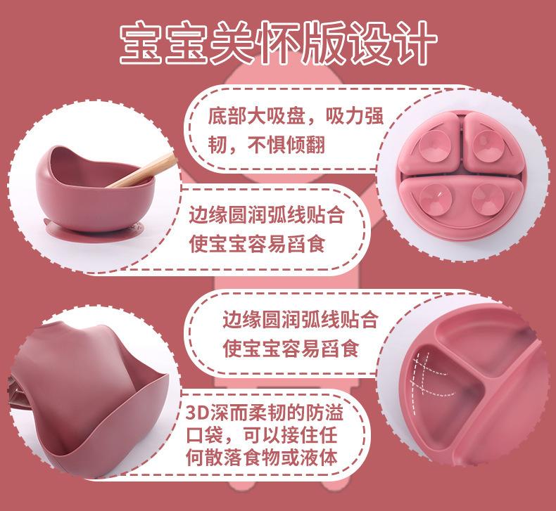 国境を越えた子供のシリカゲルの食事皿セット赤ちゃんの補助食皿愛の食事皿母子飼育食器セット