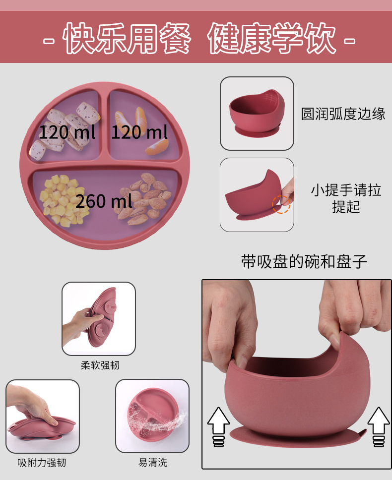新型爆型乳児シリカゲル熊掌食盤大吸盤分離プラチナトレイ飼育児童食器セット新