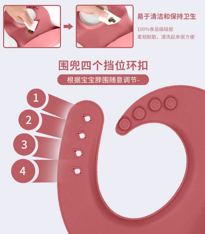 シリカゲルの赤ちゃんのご飯のポケットの防水食品級の食事の口の薄いよだれのポケットの汚れ防止の子供の食器のセット
