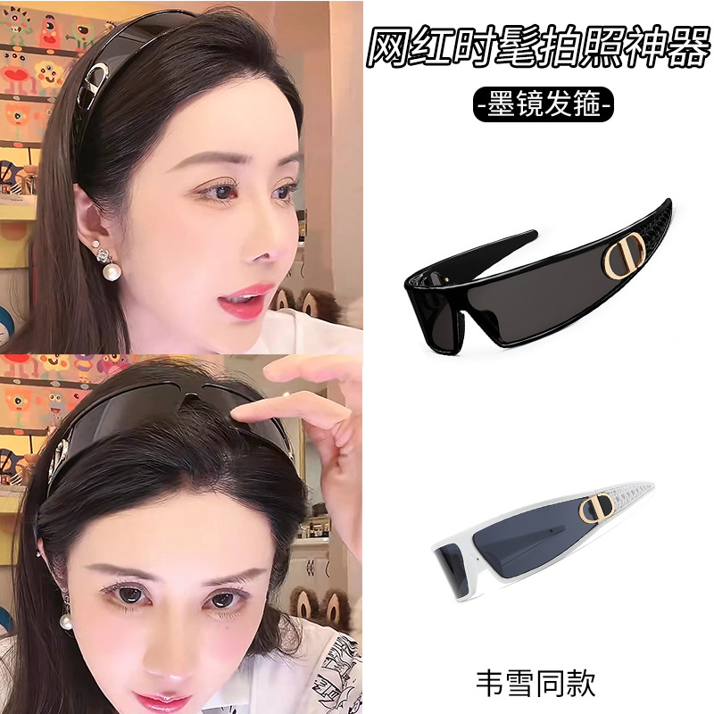 新款二合一时尚设计感发箍墨镜小红书同款街拍太阳防紫外线潮眼镜