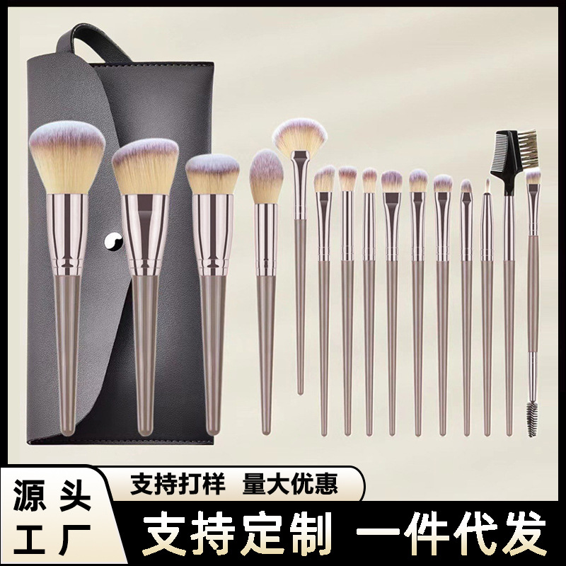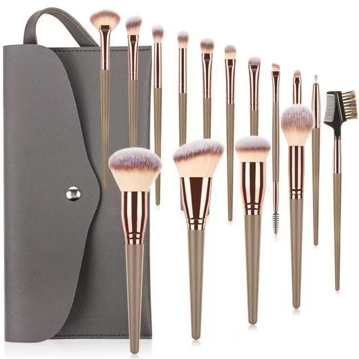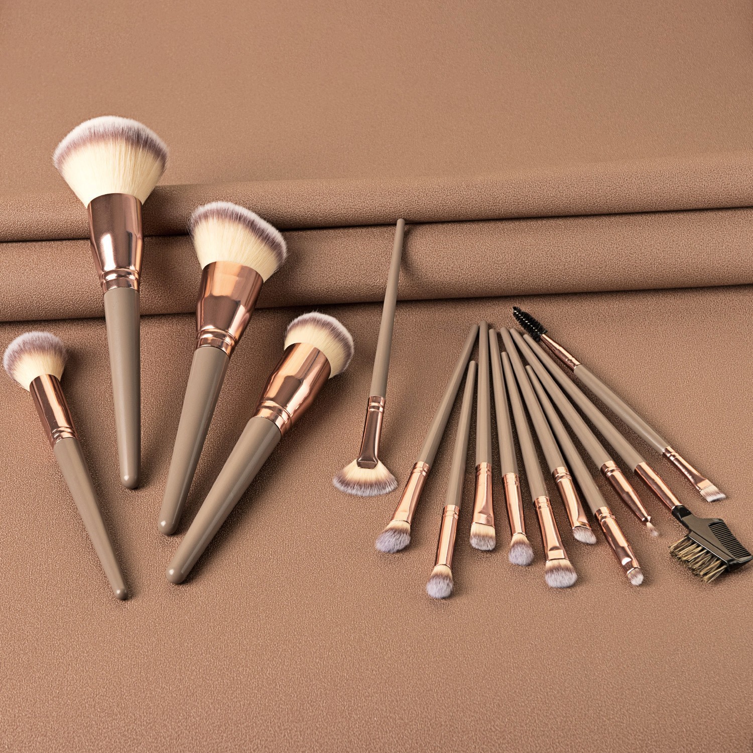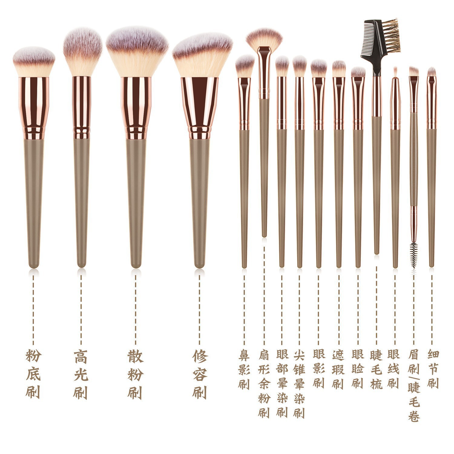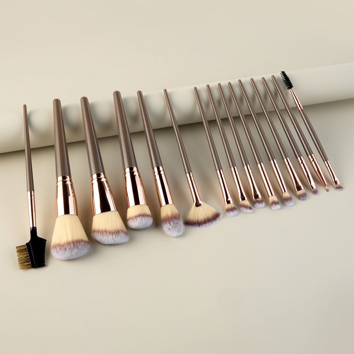 跨境香槟色15支化妆刷套装便携款软毛腮红刷全套粉底刷厂家直发