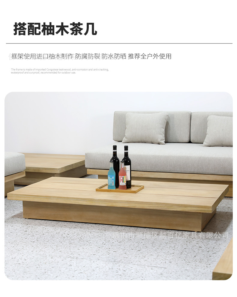 シングルセンターソファ2脚+ダブルセンターソファ2脚+正方形コーヒーテーブル2脚+ロングコーヒーテーブル1脚,2人掛けソファ+コーナーソファ+正方形テーブル+ロングコーヒーテーブル,2 ダブルセンターソファ + コーナーソファ + フットレスト + ロングコーヒーテーブル,シングルセンターソファ(チーク+オリフィンアウトドアファブリック),ダブルセンターソファ(チーク+オリフィンアウトドアファブリック),コーナーソファ(チーク+オリフィンアウトドアファブリック),チーク角型コーヒーテーブル (100*100*20cm),チーク材ロングコーヒーテーブル (150*80*20cm)