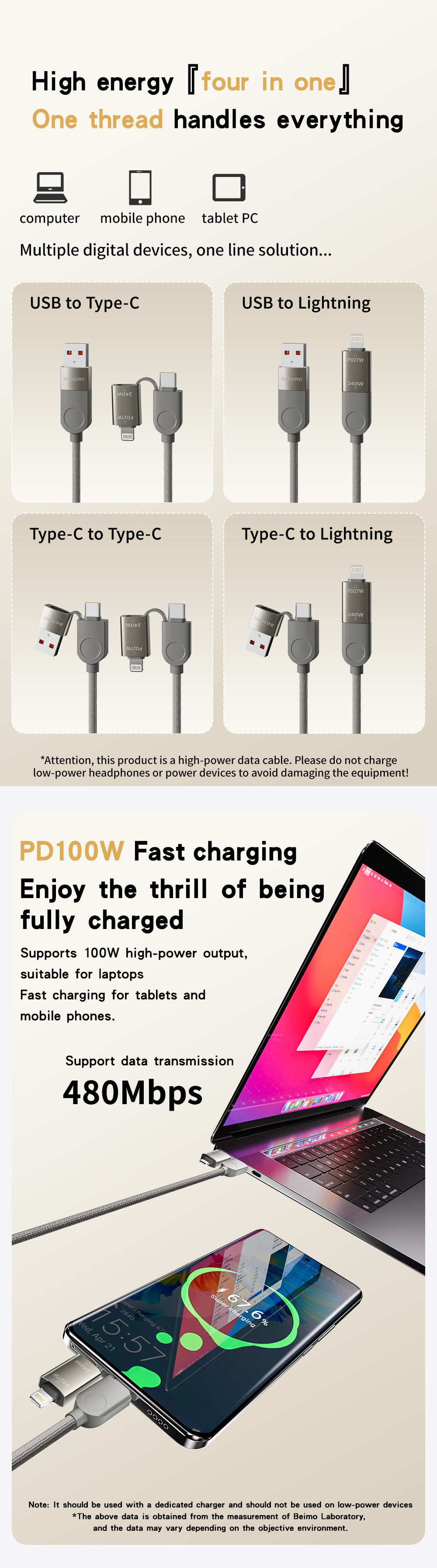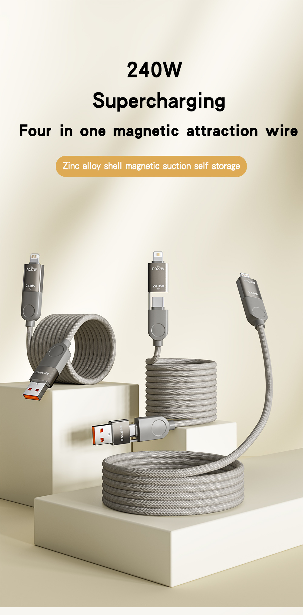 [安全なフラッシュ充電] Beimo 240w 磁気吸収性フォーインワン高速充電ケーブルは、Apple iPhone16 Huawei に適しています