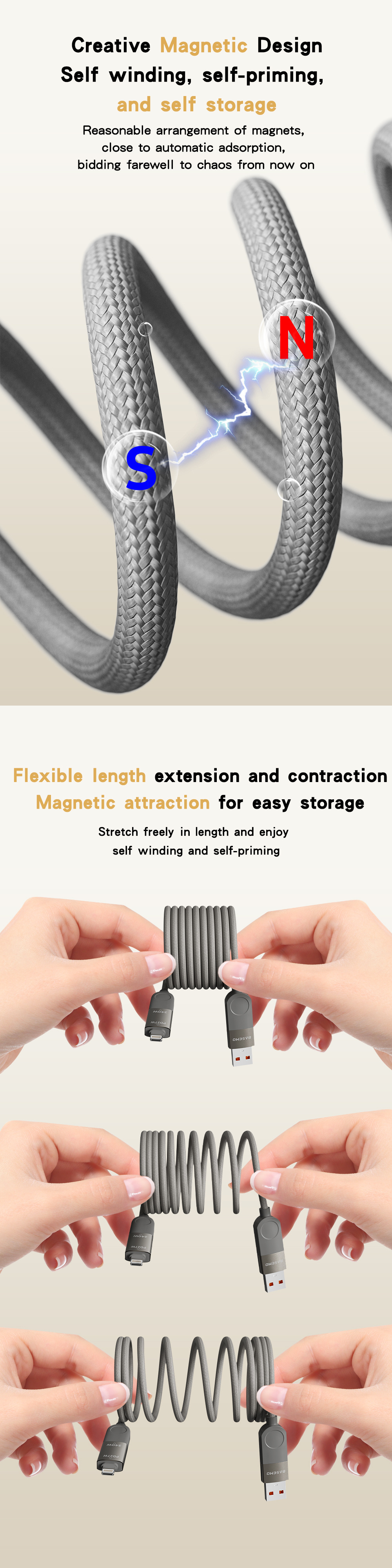 240W磁吸快充自卷自吸不缠绕适用USB-Type-c-lightning1617充电线