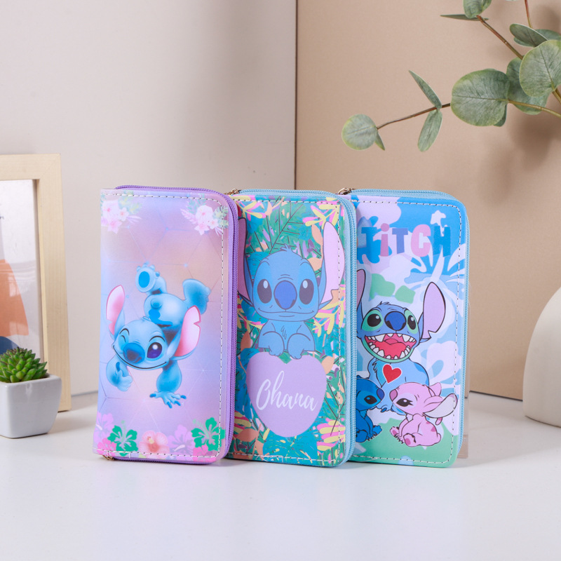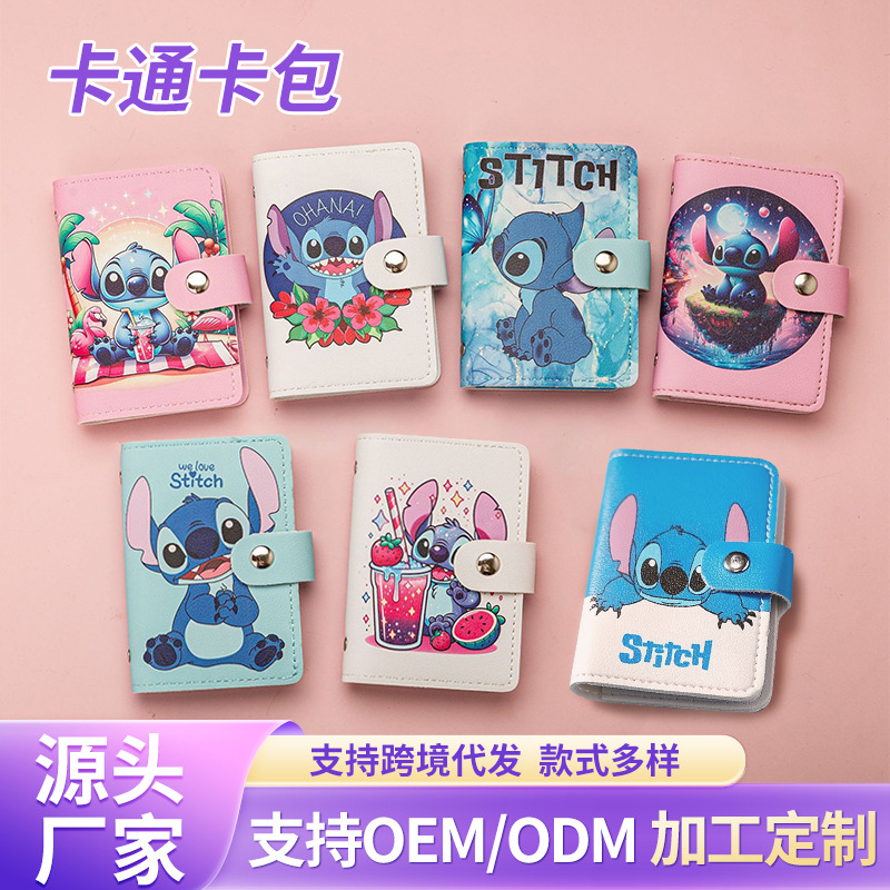 跨境史迪仔钱包女士钱包卡通零钱包卡包拉链包单拉钱包可爱INS批