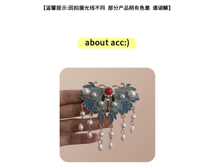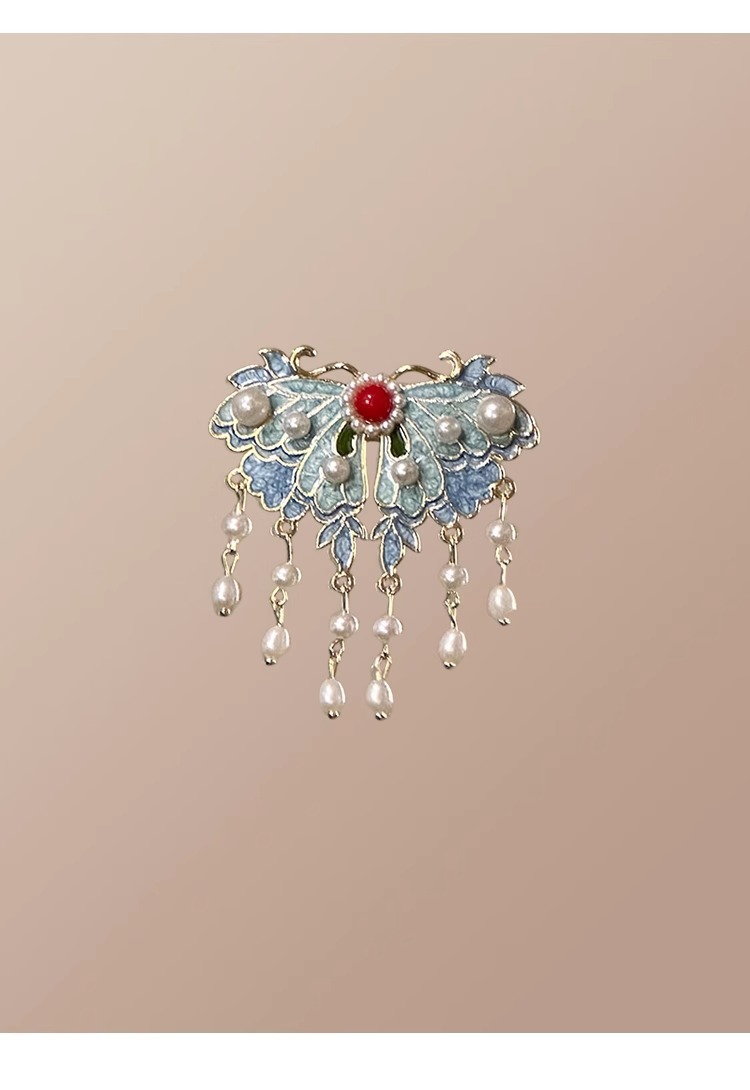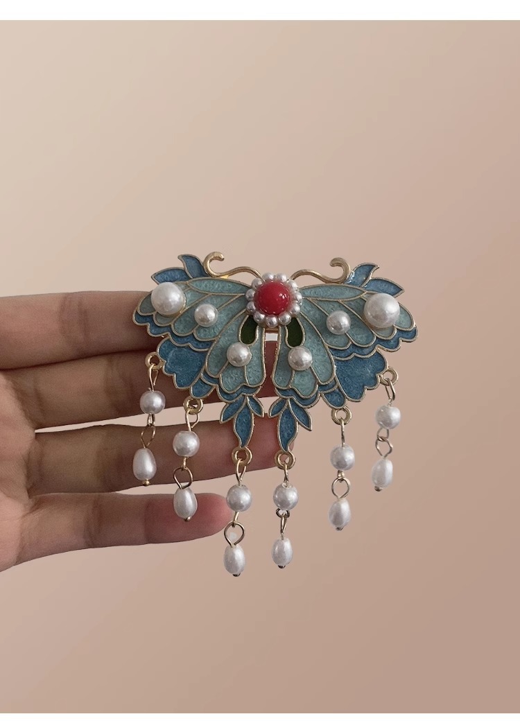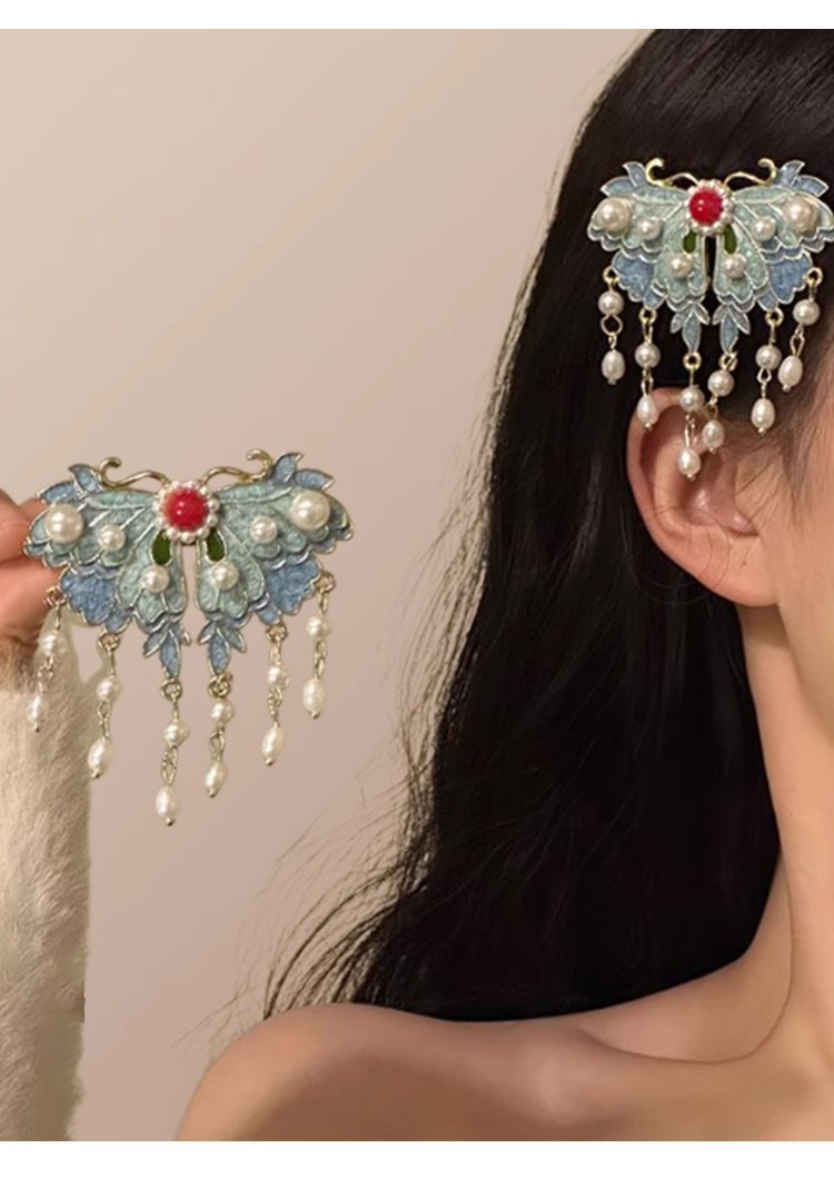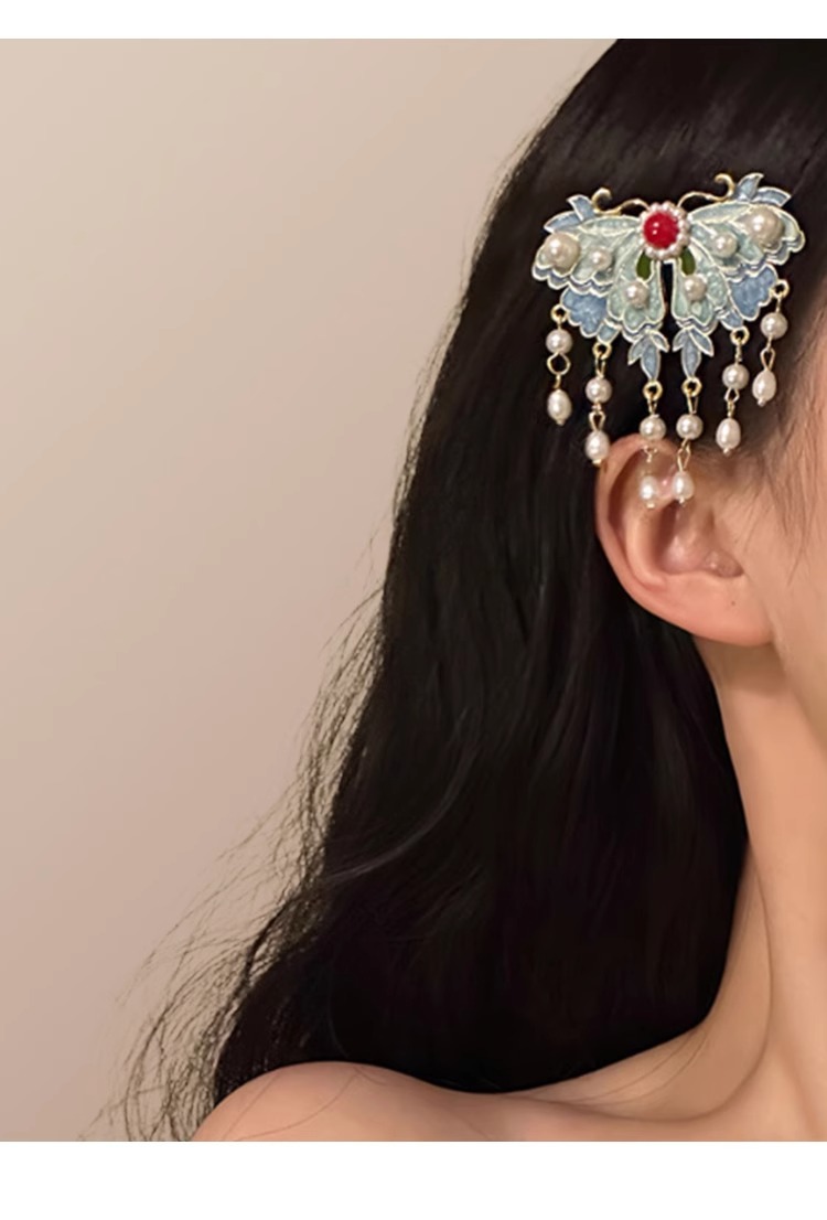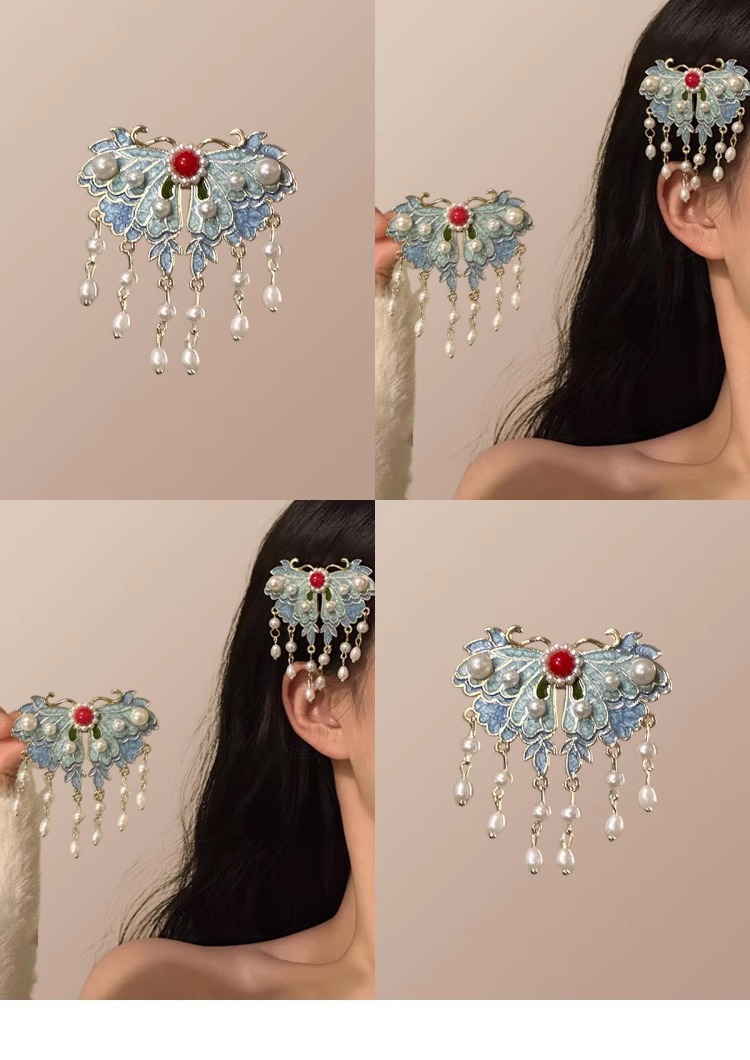 新中国風蝶青流蘇真珠ヘアピン女性中国風ヘアピン女性ヘアピンサイドクリップ漢服ヘアアクセサリー
