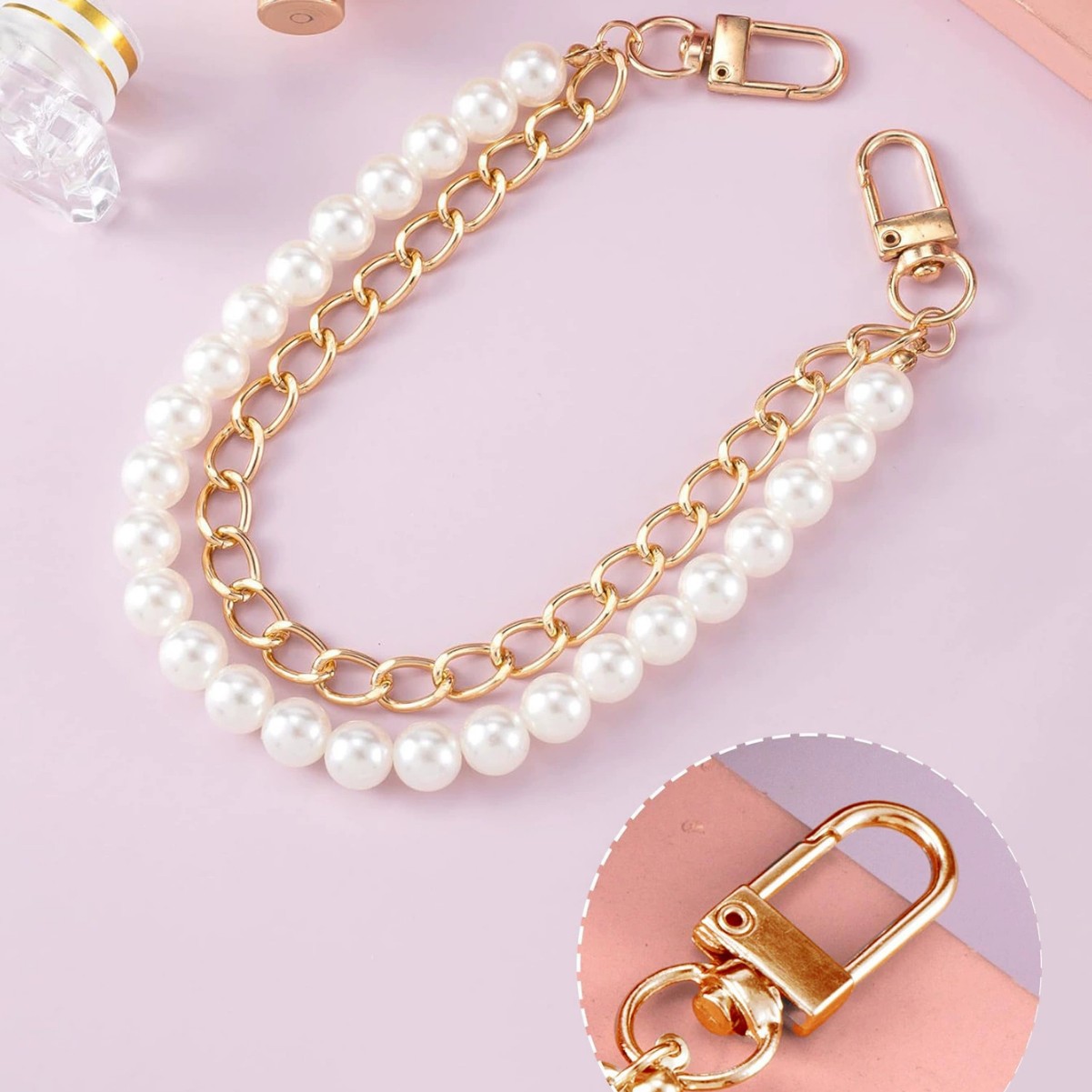 パールラウンドビーズ合金アルミチェーンドアバックルラウンドバックルシングルダブルレディースバッグチェーン差し替え延長バッグショルダー