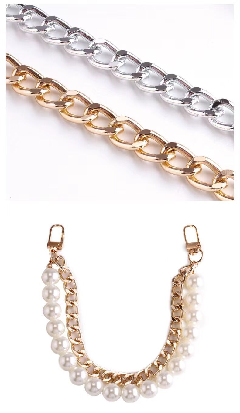 欧米のクロスボーダーのファッションの潮流のアルミニウムのチェーンのハンドバッグのビーズの肩のチェーンの復古のシンプルな真珠の合金のボタンのチェーン