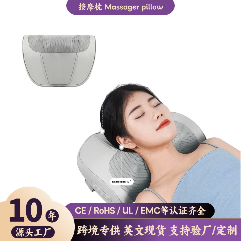 跨境颈椎按摩枕护颈靠垫多功能热敷按摩器揉捏靠背电动工厂代发