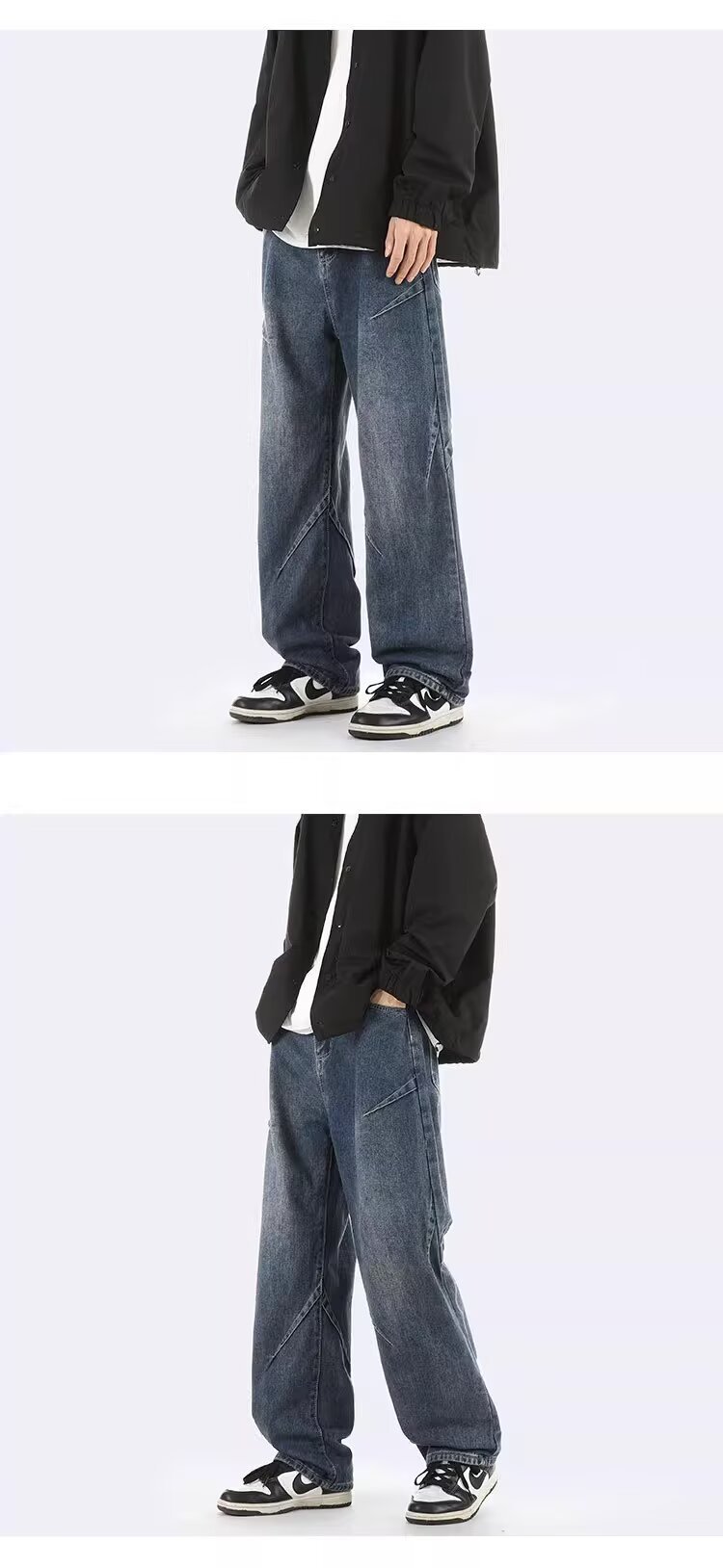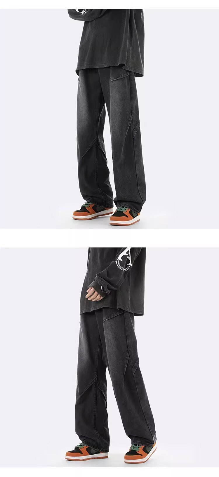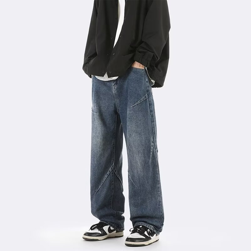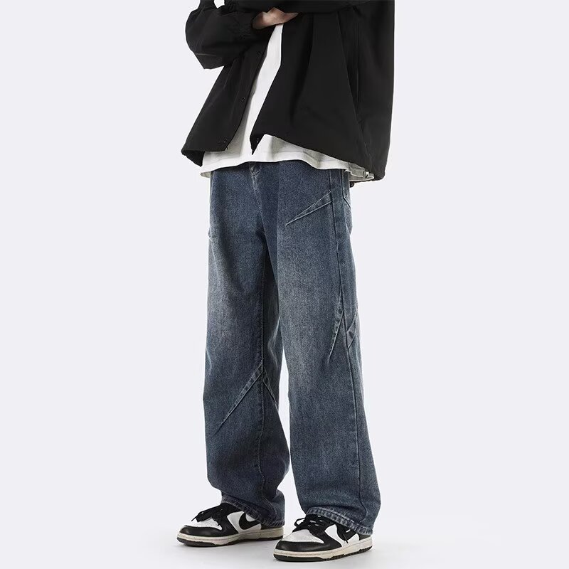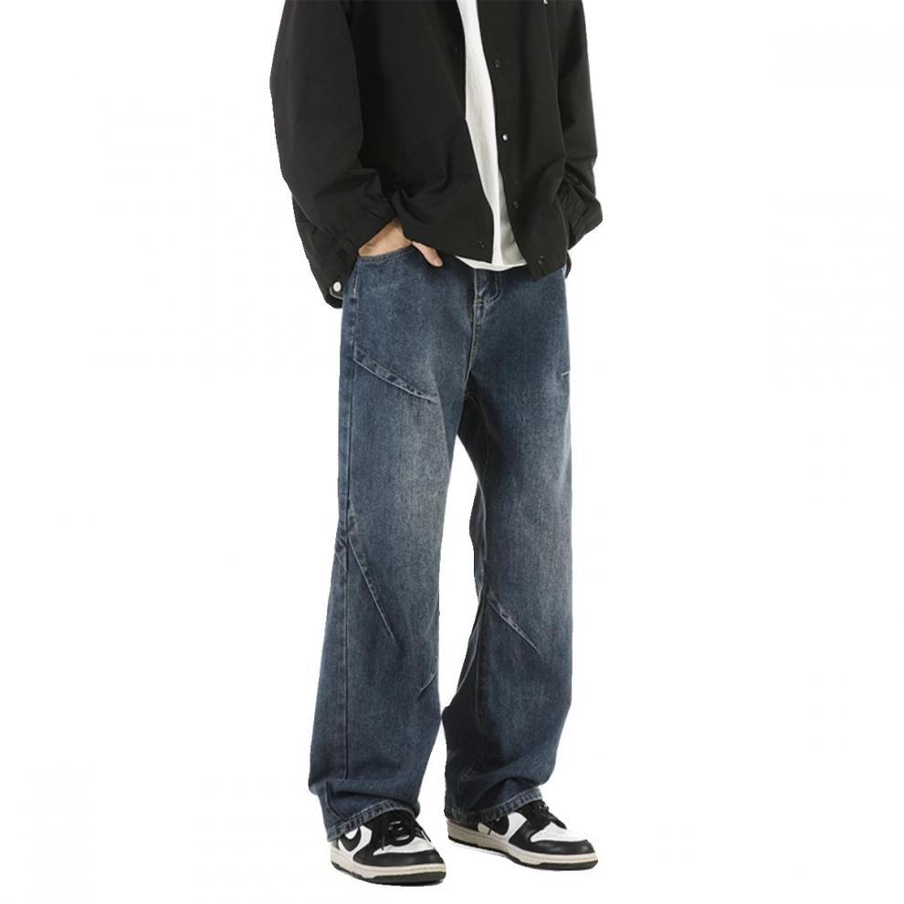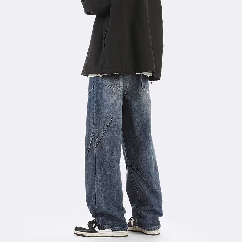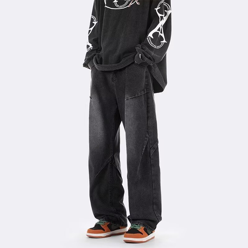 ジーンズ男女春秋アメリカのレトロな水洗いデザイン感ストレートパンツ高街痞帅広脚長ズボン潮