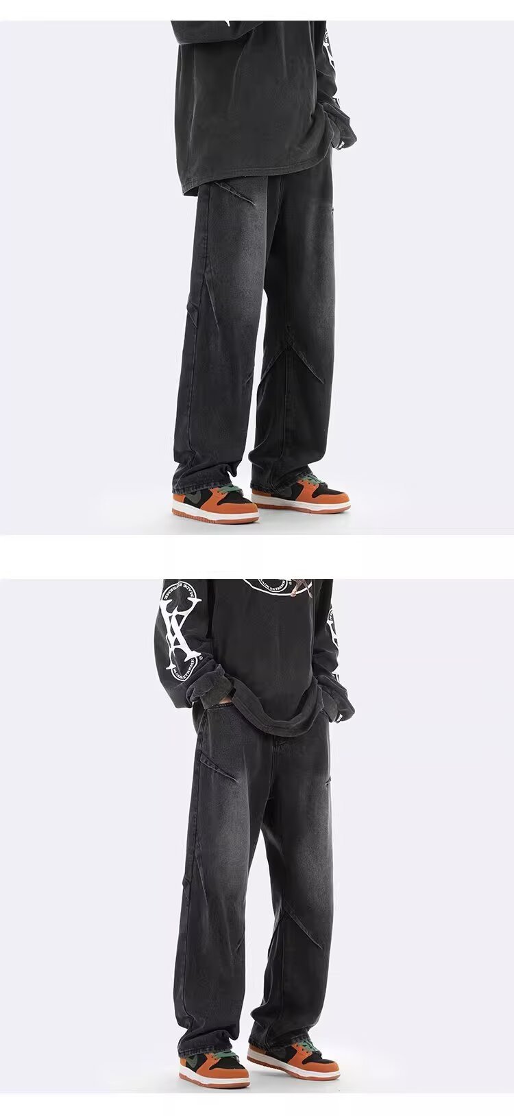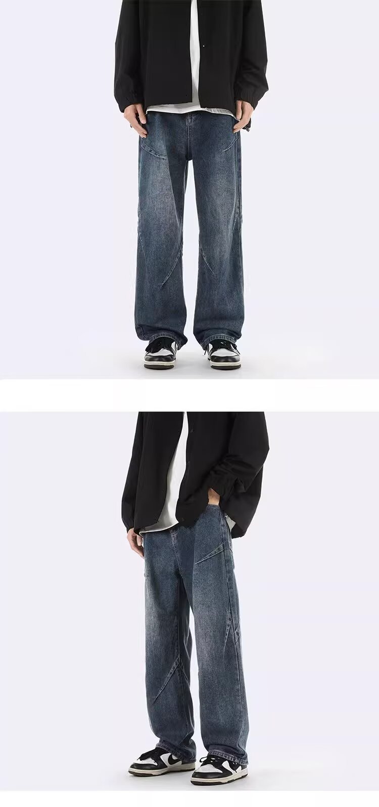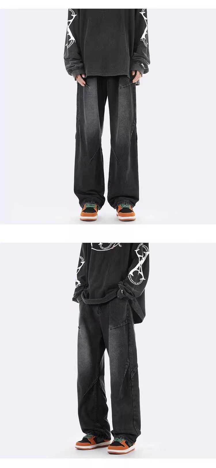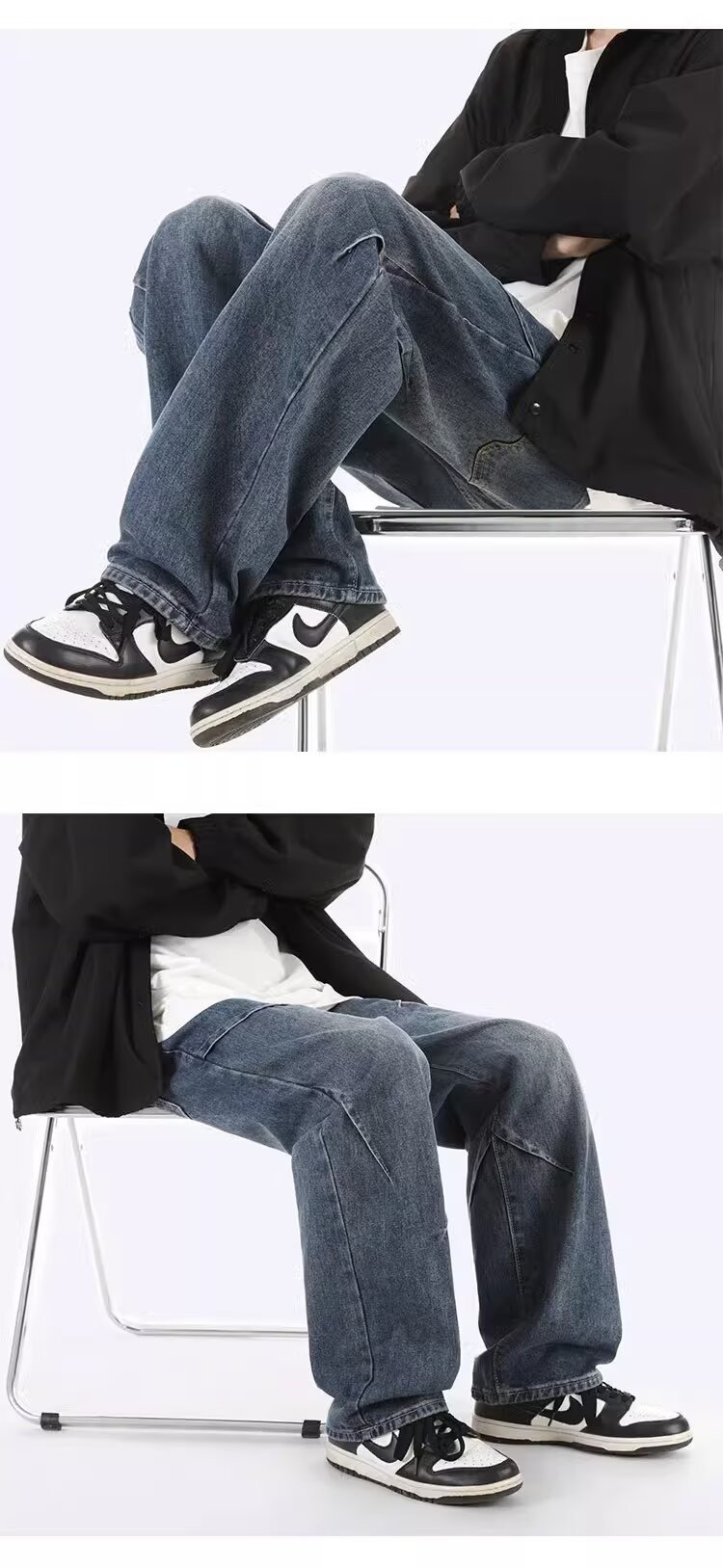 ジーンズ男女春秋アメリカのレトロな水洗いデザイン感ストレートパンツ高街痞帅広脚長ズボン潮