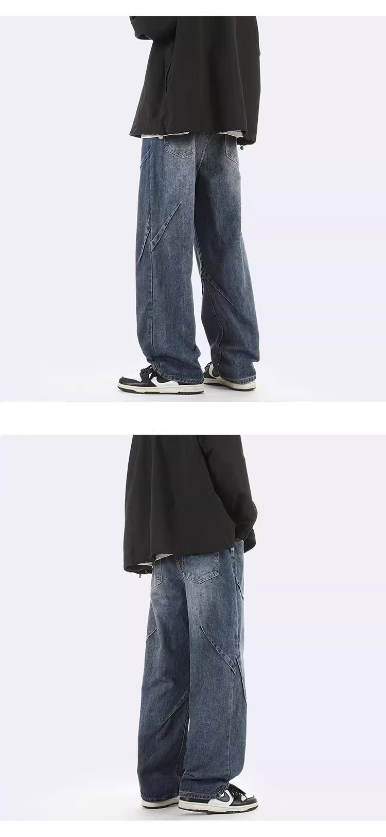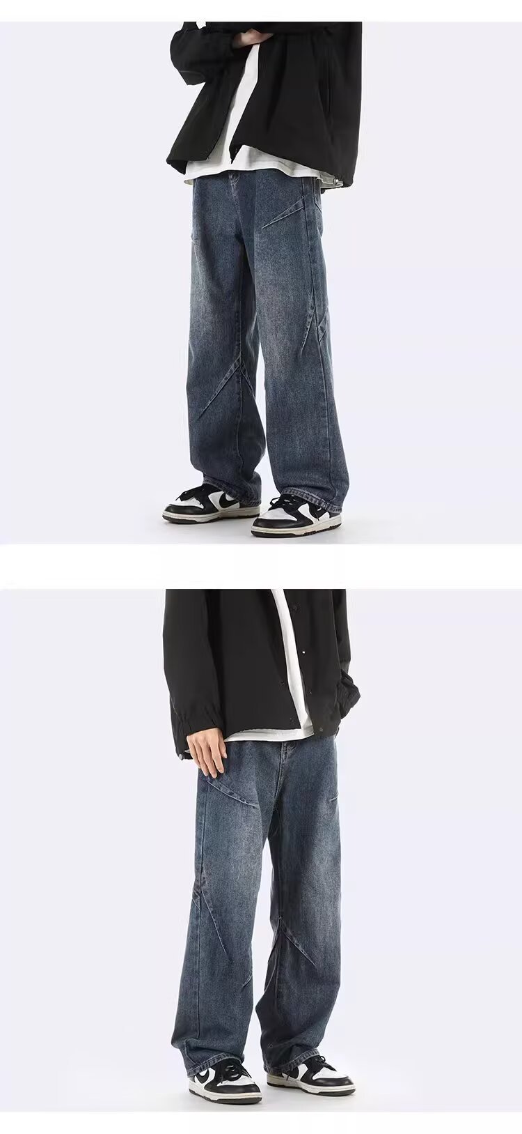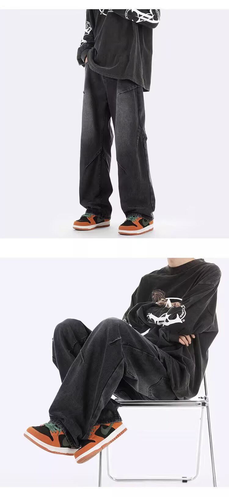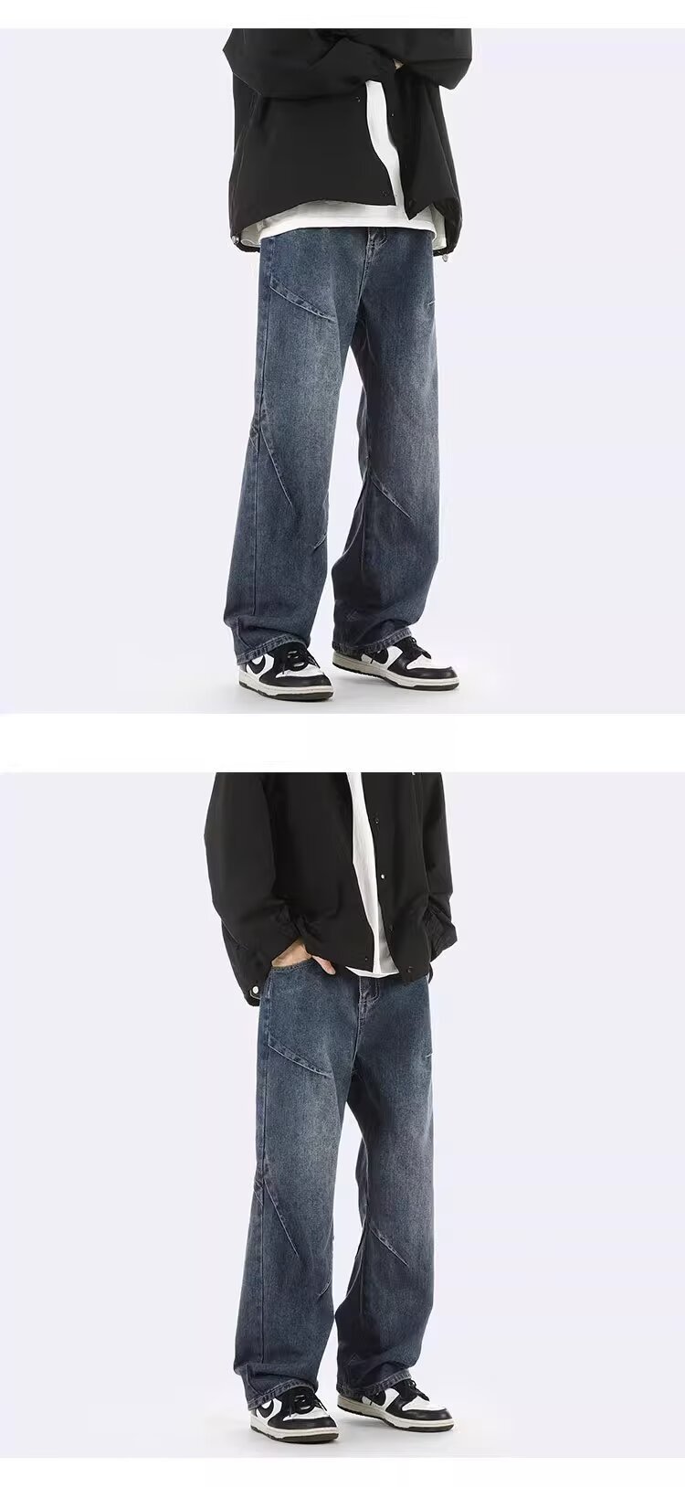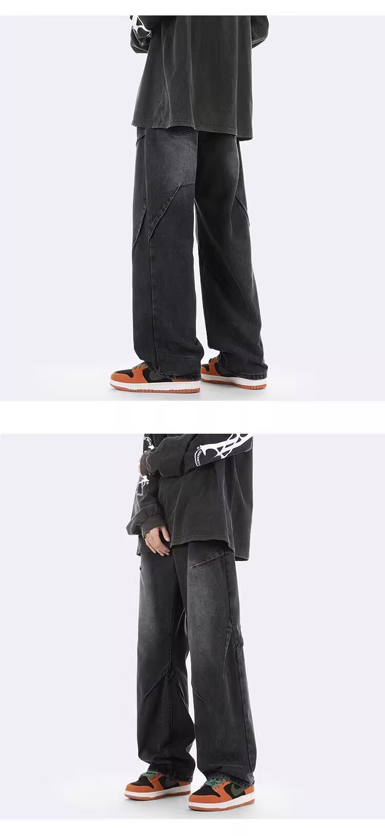 ジーンズ男女春秋アメリカのレトロな水洗いデザイン感ストレートパンツ高街痞帅広脚長ズボン潮