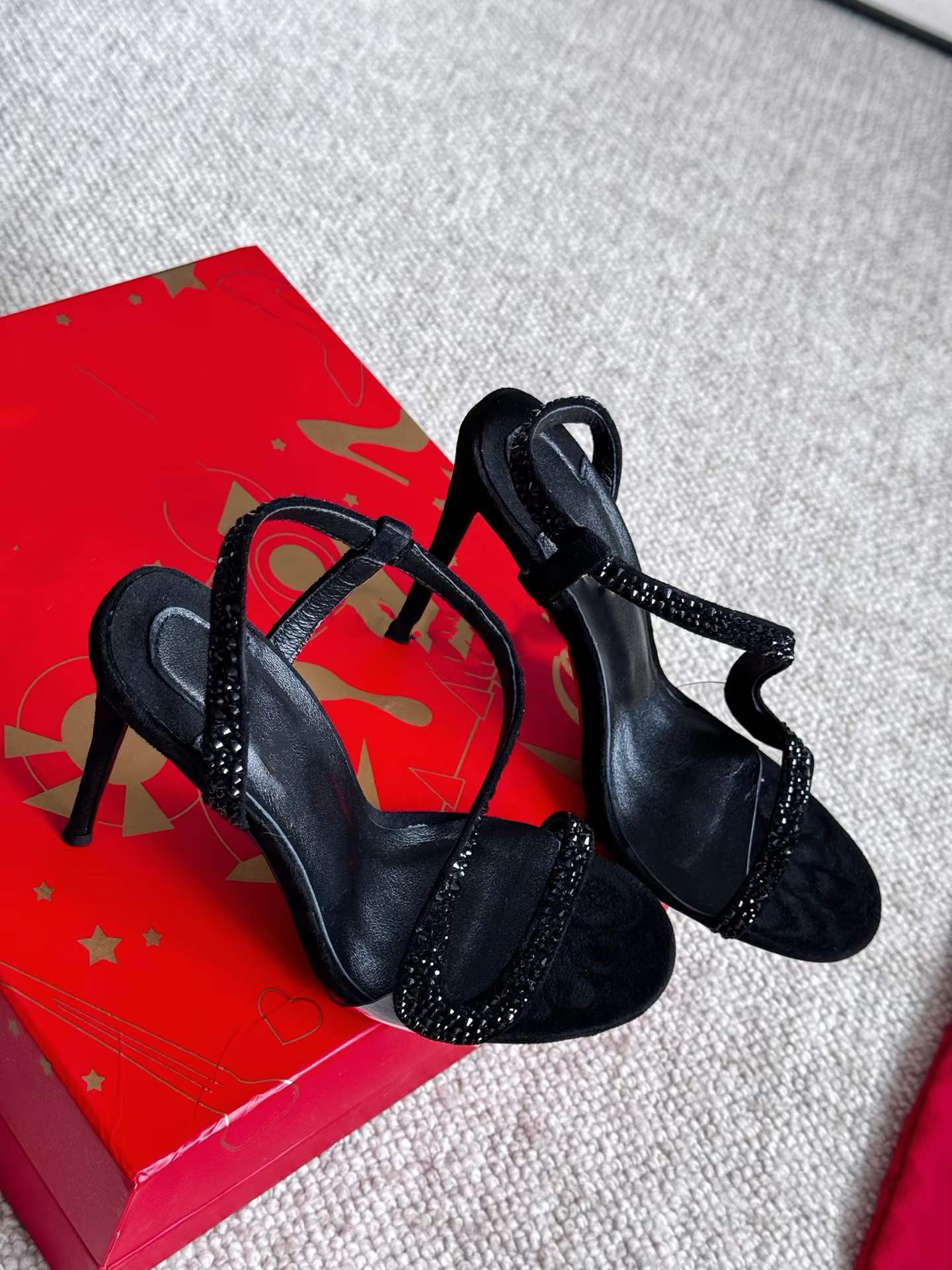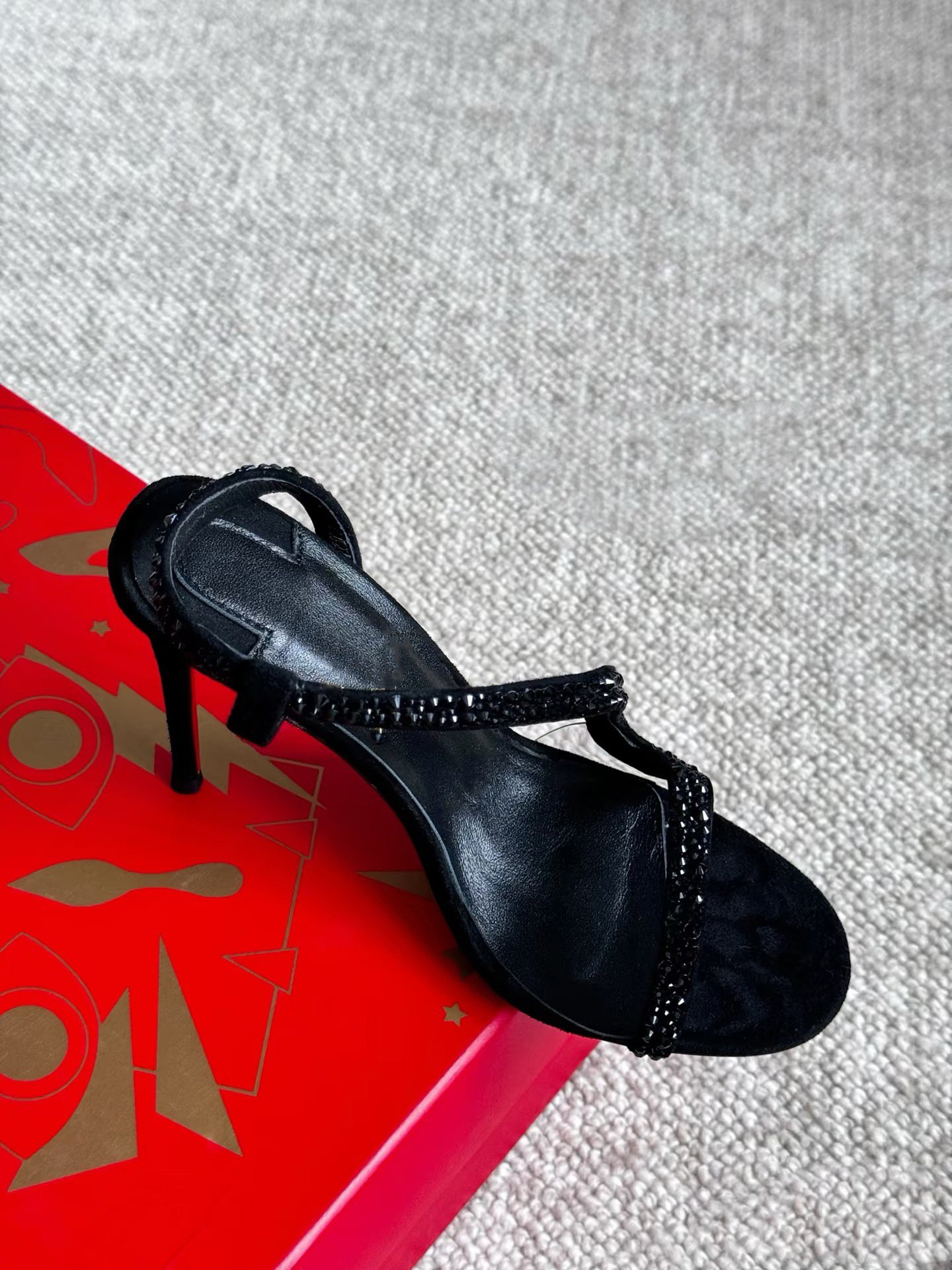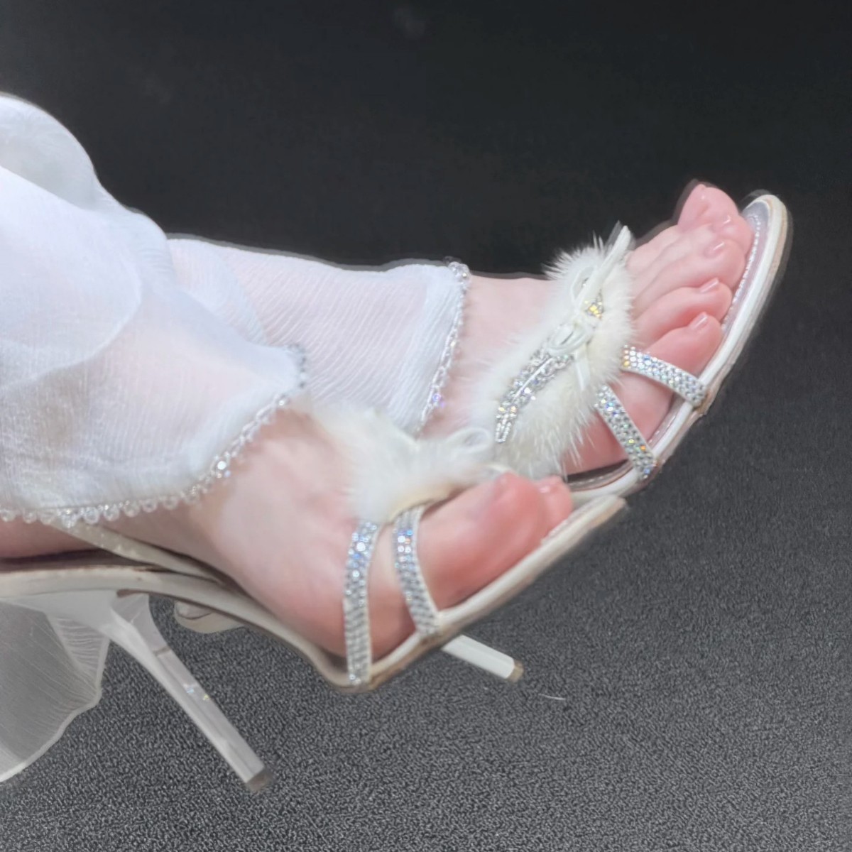 RC同款绝美后带毛毛高跟鞋2026年夏季新款中古水钻露趾凉鞋女细跟