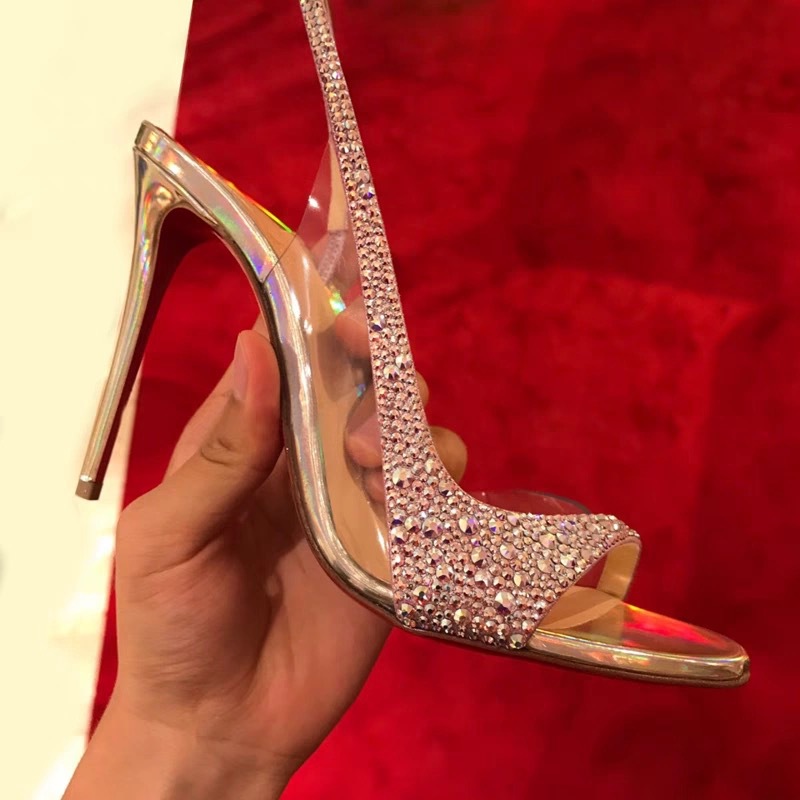 RV同型丸頭幻彩ドリルハイヒール2025年夏新作魚口透明露指サンダル