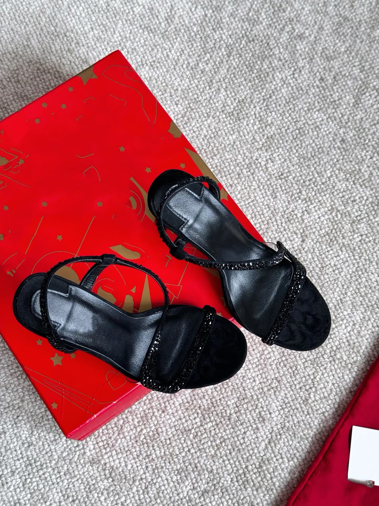 露思RV同款心形方头高跟鞋2026夏季新款一字带水钻露趾凉鞋女细跟