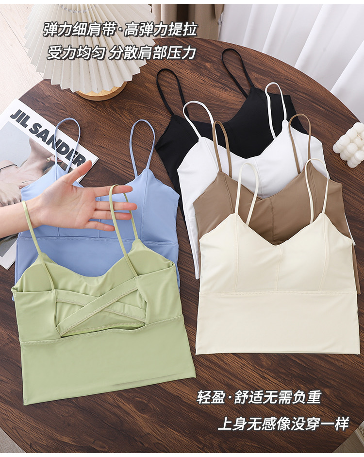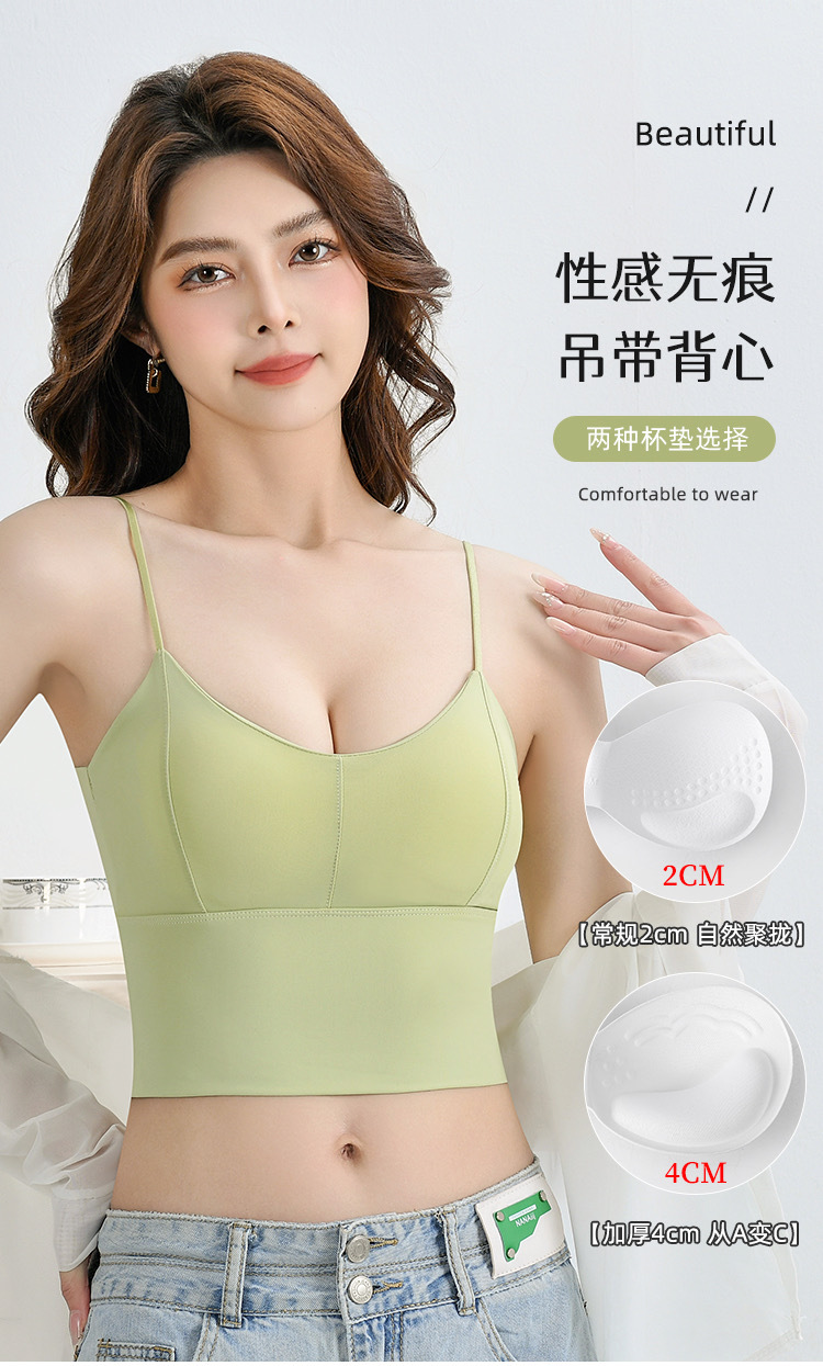 厚い胸パットのストラップのベストの小さい胸の専用の外で拡大して大きい氷の糸の無痕のベストの中で外でストラップの美背を着ます。