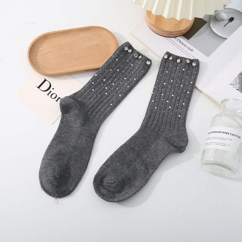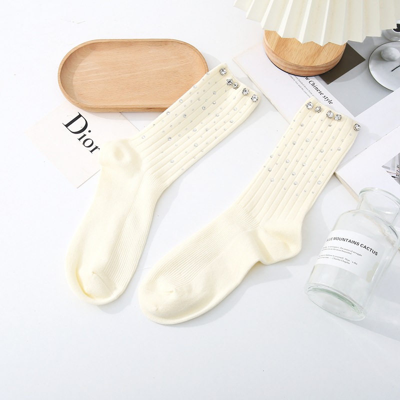 秋冬新款饰品袜女满天星闪钻ins韩版重工烫钻精梳棉爆款装饰袜女