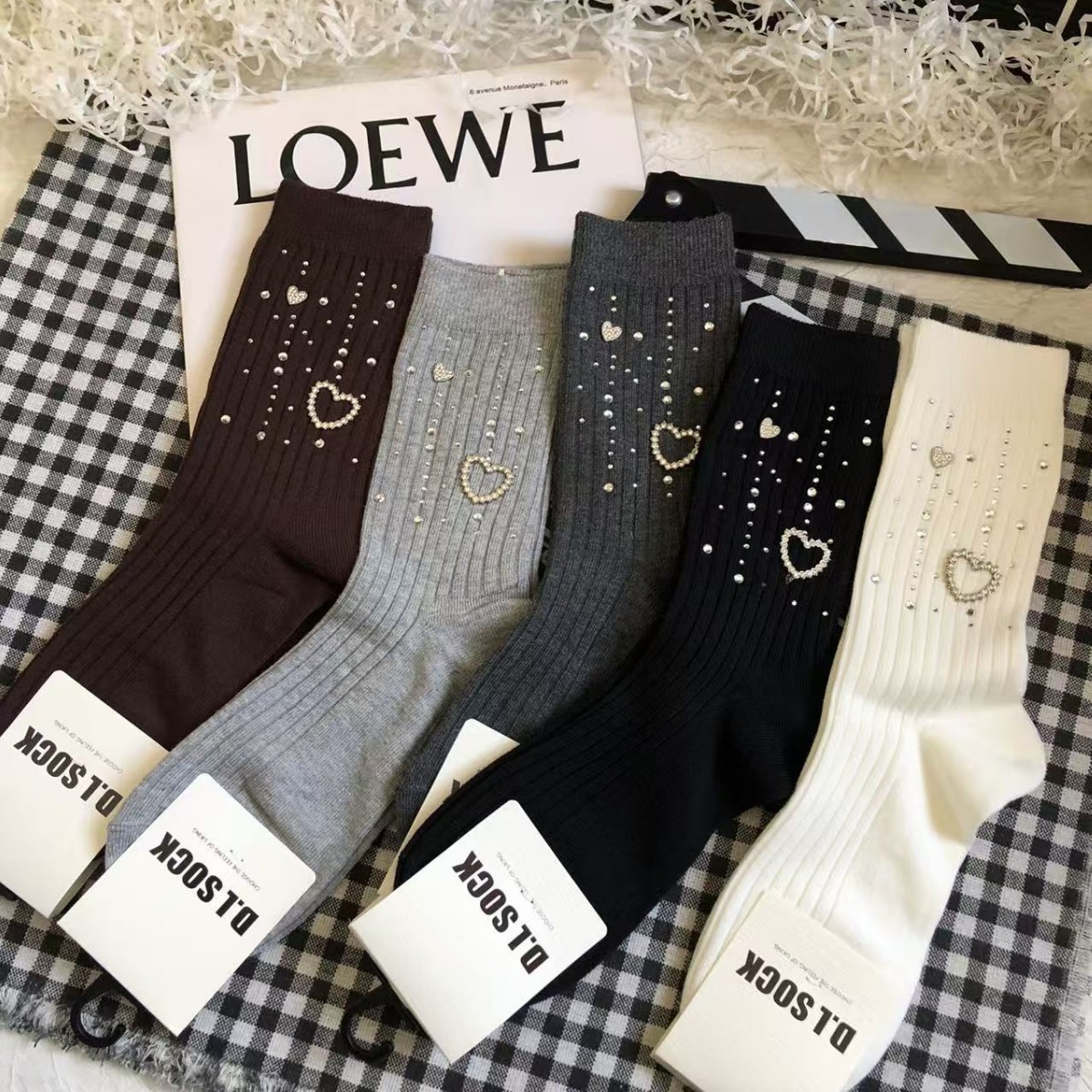 2025韓国版ホットドリル高級軽豪華靴下中筒女性綿靴下東大門ins風個性甘いキャンパス