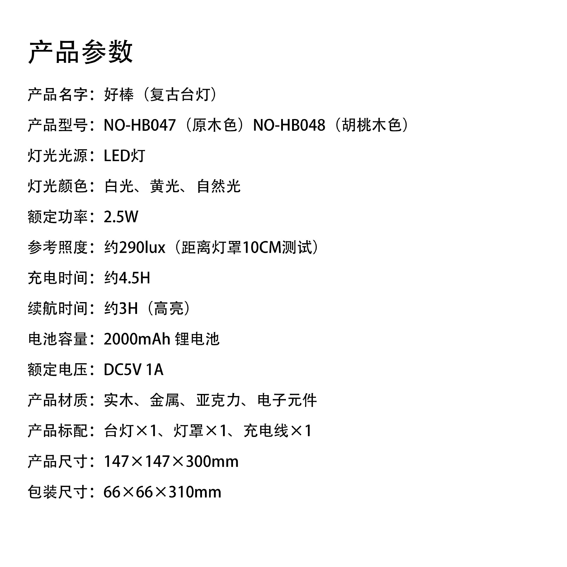 产品标配:台灯x1、灯罩x1、 充电线x1