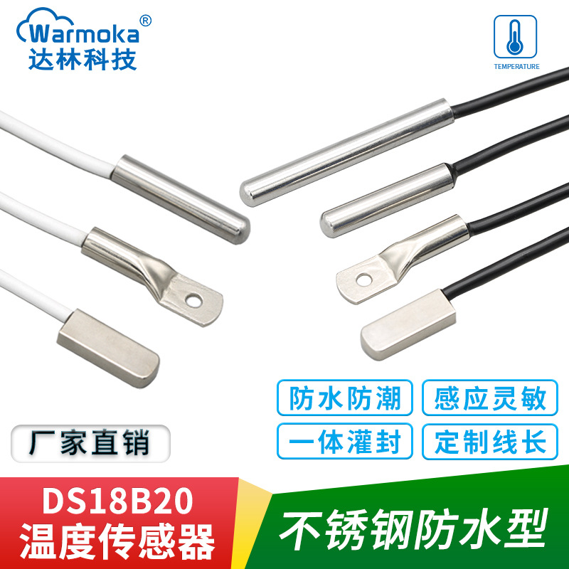 DS18B20デジタル温度センサープローブ水温探知パッチフラットシェル線耳ステンレスパッケージ防水