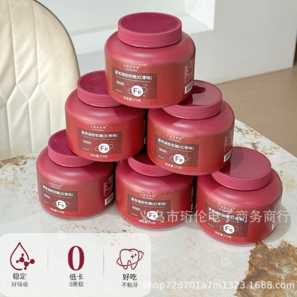 富铁软糖红枣味凝胶软糖富含铁元素瓶装270克明胶软糖果独立包装