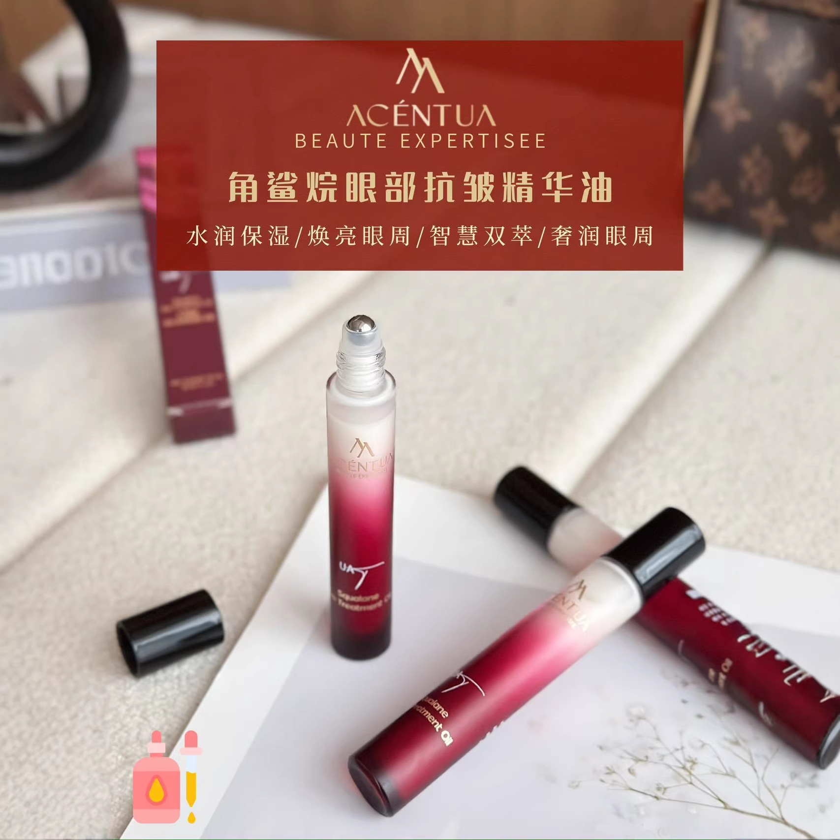 ACENTUA角鲨烷眼部抗皱精华油滋润保湿淡化眼周纹提拉紧致抗皱滚