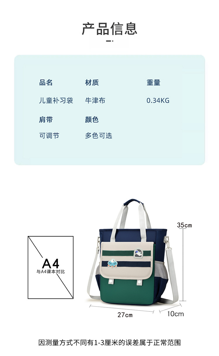 小学生补习包双肩防水男儿童女生补课包手提袋作业收纳袋书包补课