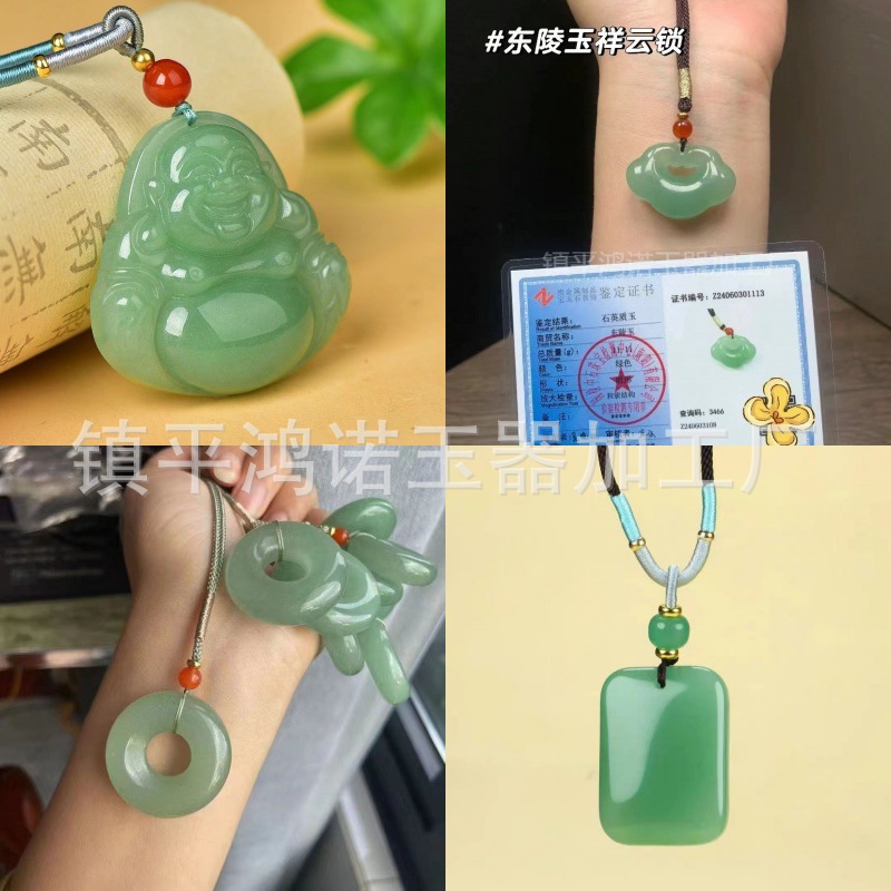 天然東陵玉弥勒仏観音ペンダント