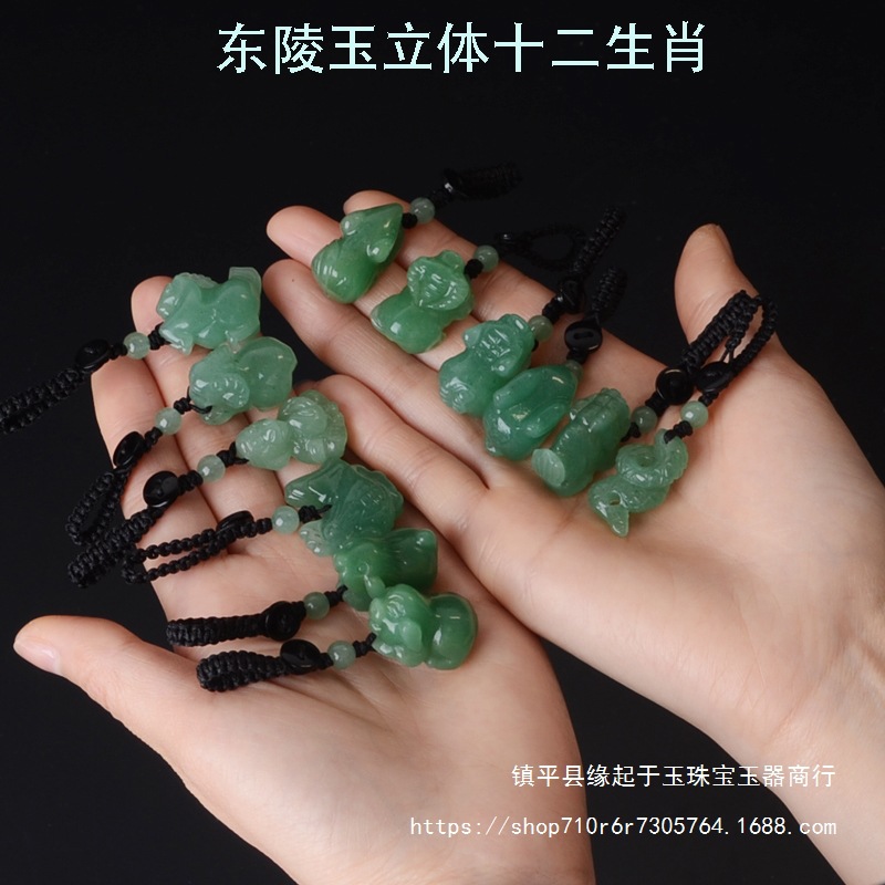 天然緑水晶十二生肖立体ペンダント鼠牛虎兎龍蛇馬羊猿鶏犬豚キーホルダー
