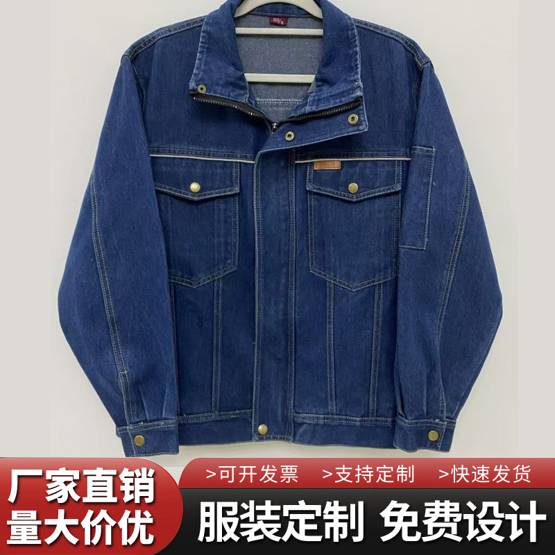 立领加厚牛仔工作服套装男工厂车间男女电焊机修服防烫耐磨劳保服