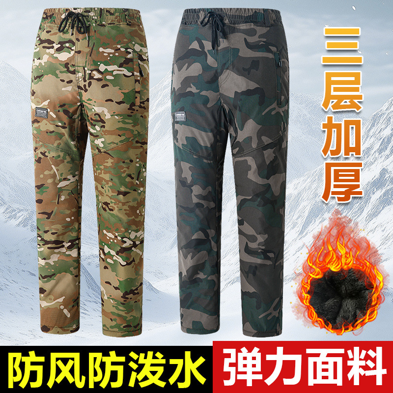 防水大码耐脏劳保裤子冬季加绒男款加厚工装棉裤冷库保暖迷彩裤子