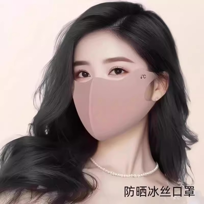 日焼け止めマスク紫外線防止女性高颜値夏日よけマスク氷糸通気無痕軽量肌色シンプル