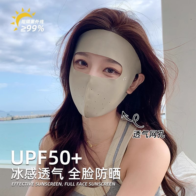 日焼け止めマスク男女通気性の薄い高颜値紫外線防止目尻全顔夏氷糸日よけマスク