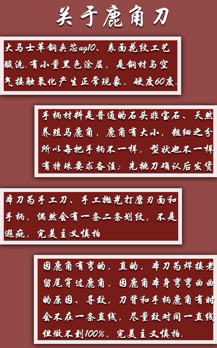 アウトドアナイフナイフナイフナイフナイフナイフナイフ鹿角ハンドルダマスカス鋼アウトドアナイフ直刀現物